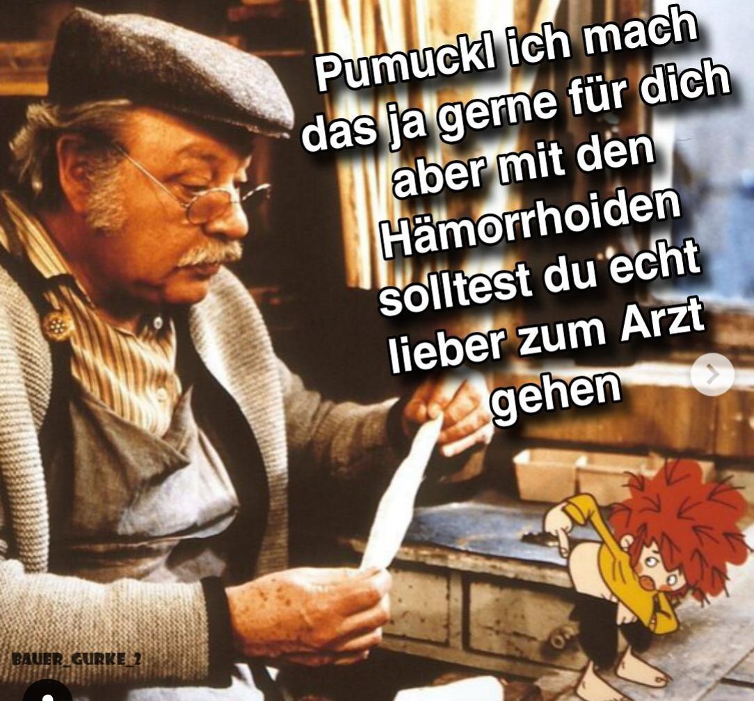 Sitzt ein Mann im Wartezimmer des Arztes. Da kommt ein Herr aus dem Behandlungsraum und hat den Kopf zwischen den Beinen durchgesteckt und schaut angestrengt nach oben. Darauf der Herr im Wartezimmer: „Ja um Gottes Willen, was ist denn Ihnen zugestoßen?" Darauf der andere: „Keine Panik. Der Arzt hat gemeint, ich hätte Hämorrhoiden und solle die mal im Auge behalten!"