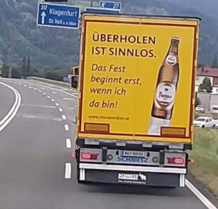 "Rudi, schau mal, da überholt uns ein Wohnwagen, der sieht genauso aus wie unser!"