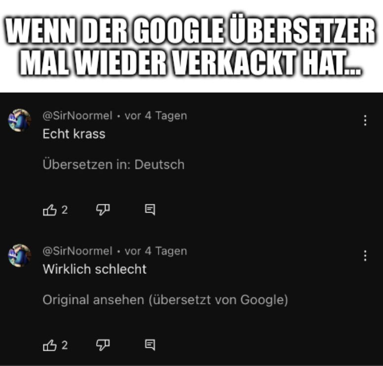Sein Geschäftspartner war verwirrt, weil er nicht wusste, was sein Partner ihm mitteilen wollte. Drei Tage später besucht er die Witwe des Mannes und fragt, was 下车我的氧气管 bedeutet. Die Frau versteht etwas Deutsch und antwortet: "下车我的氧气管? Das bedeutet: Gehen Sie von meinem Sauerstoffschlauch runter!"