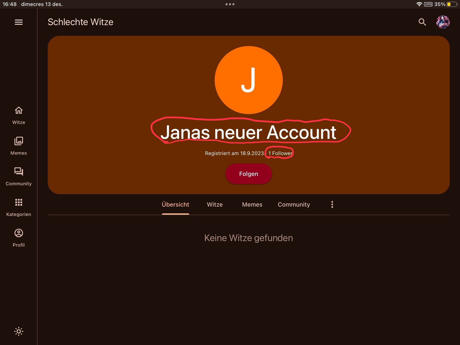 Hallo ich heiße João und mache viele Witze und Memes. Du kannst mir folgen, aber wenn du mir nicht folgen willst, ist das okay. Ich hoffe dass ihr viel Spaß mit meinen Memes und Witzen habt und das ihr viel darüber lacht 🤣 Mein ziel ist 90 Follower #gegen Spam #gegen Felix #gegen Jana Mein erstes mal dass ich die 1000 mache 20.08.2024 Account 2 Jahre alt