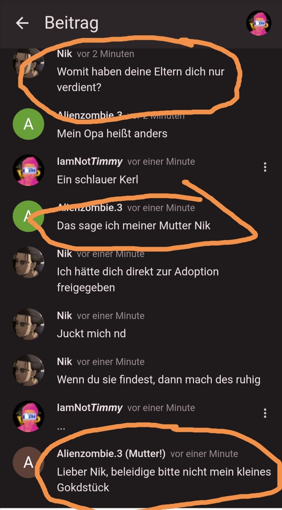 Jedes Mal wenn man sich gegenseitig beleidigt