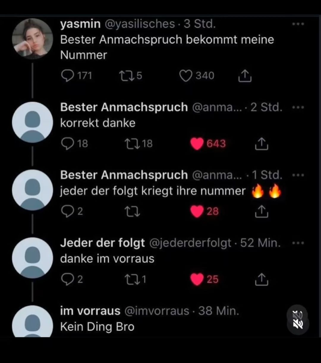 Hey, du, darf ich deine Nummer haben, weil meine habe ich verloren? 😭