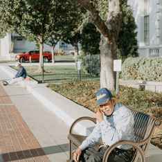 Er steckt sein Handy weg und steigt aus. Die Bahn fährt los.