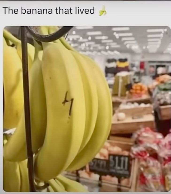 "Ich habe mir gerade Bananen gekauft." "Komisch, bei uns sind sie doch immer krumm!"