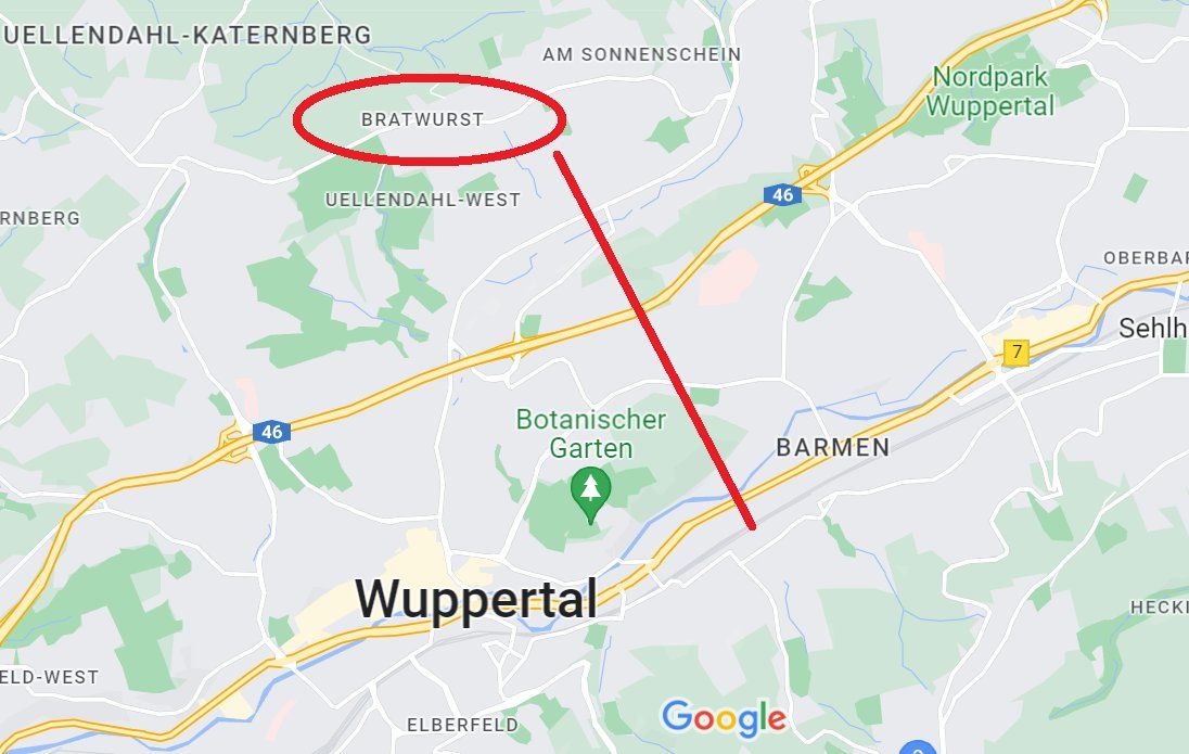 "Und wo wohnst du?" "In Wuppertal-Bratwurst" WTF?
