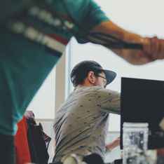 Typ in einer Ecke: "Also, ich habe hier einen wild um sich schießenden Waschbär gezeichnet und sein bester Freund ist ein sprechender Baum."