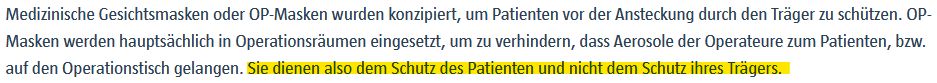 Zu deiner 3. Quelle. Das widerspricht sich aber mit dem, was du schreibst: "Wer glaubt, dass Ärzte/Ärztinnen oder auch Zahnärzte/Zahnärztinnen Masken tragen, um den Patienten zu schützen, liegen also falsch."
