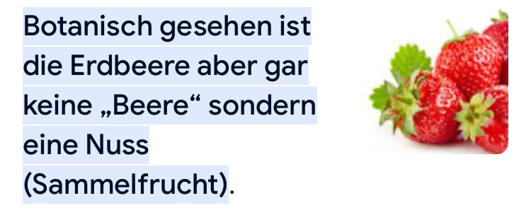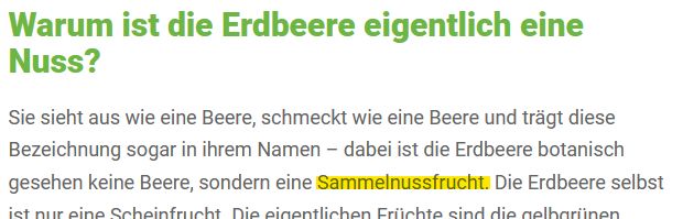 Ja und Himbeeren sind keine Beeren sondern Nüsse weil sie ganz viele kleine Kerne haben