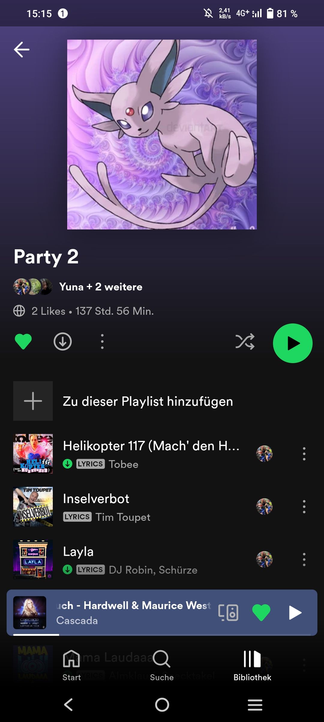 Hab nd soviel gefunden ist jetzt 2,5ha länger Hab ungefähr 80 Songs hinzugefügt