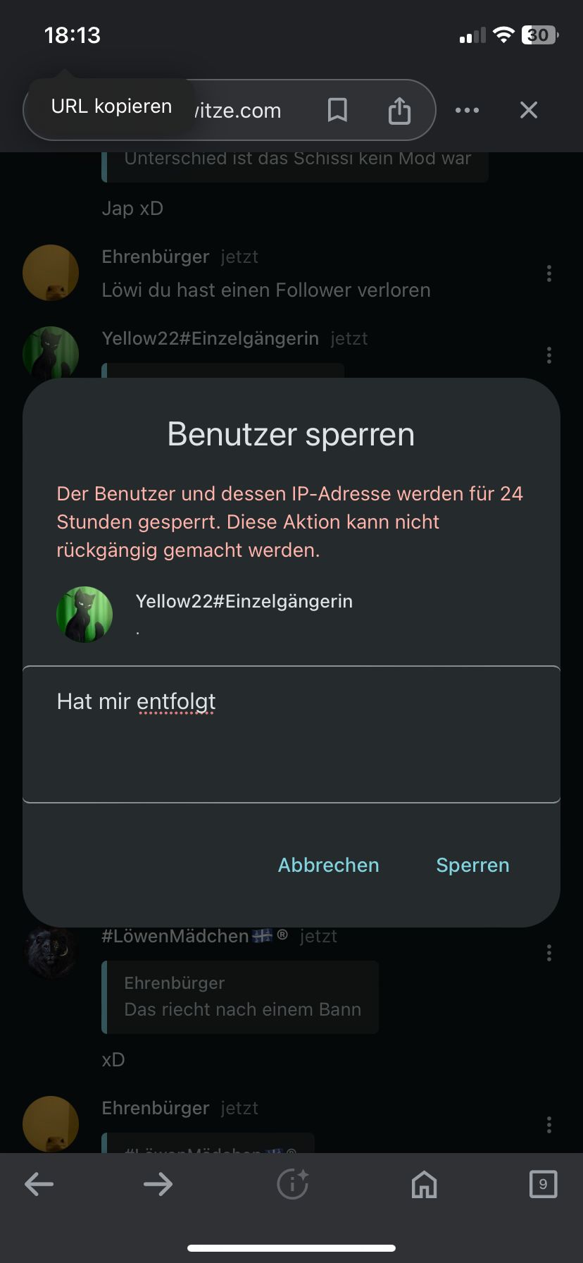 Wir haben 1en Stalker ich fang gleich an zu Singeen
