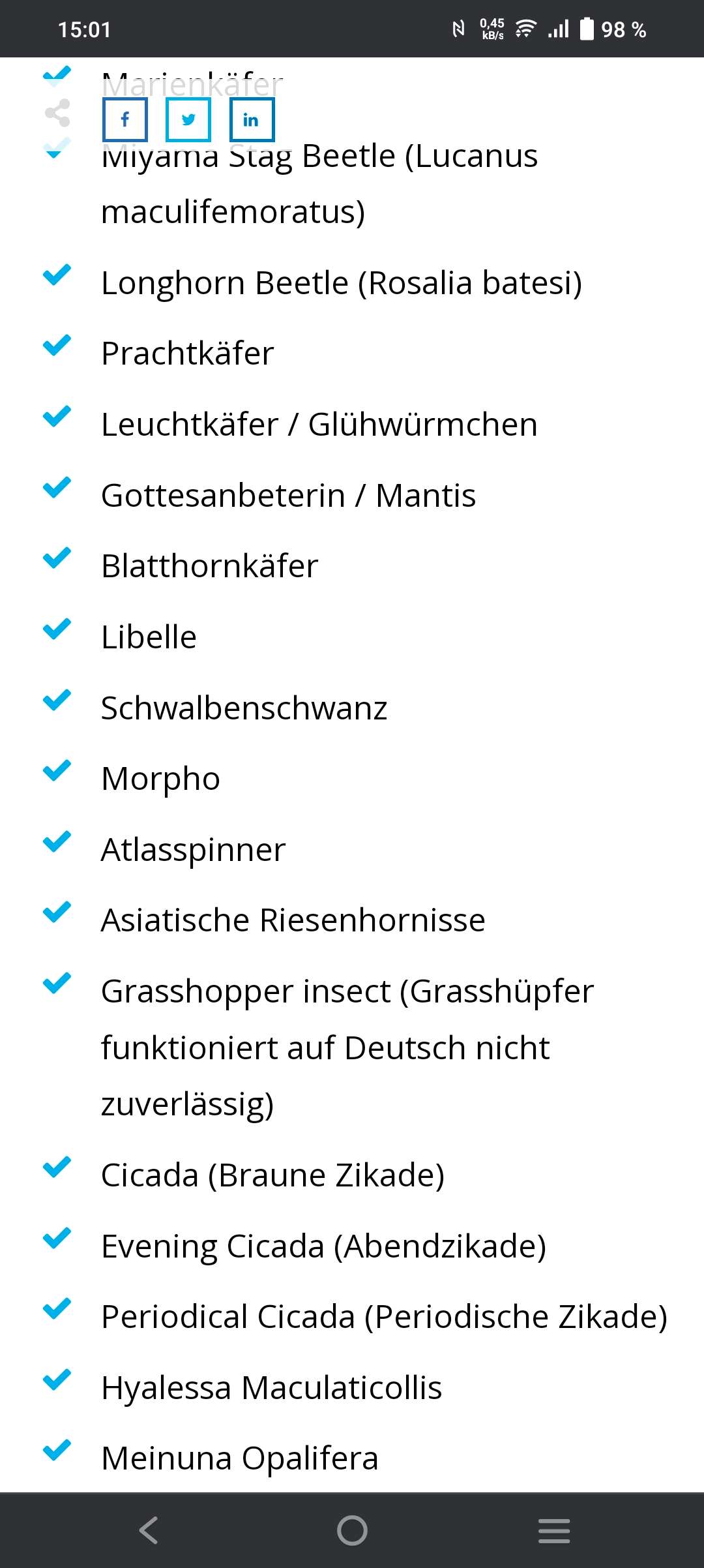 Hier nich eine liste mit den tieren die man projezieren kann: