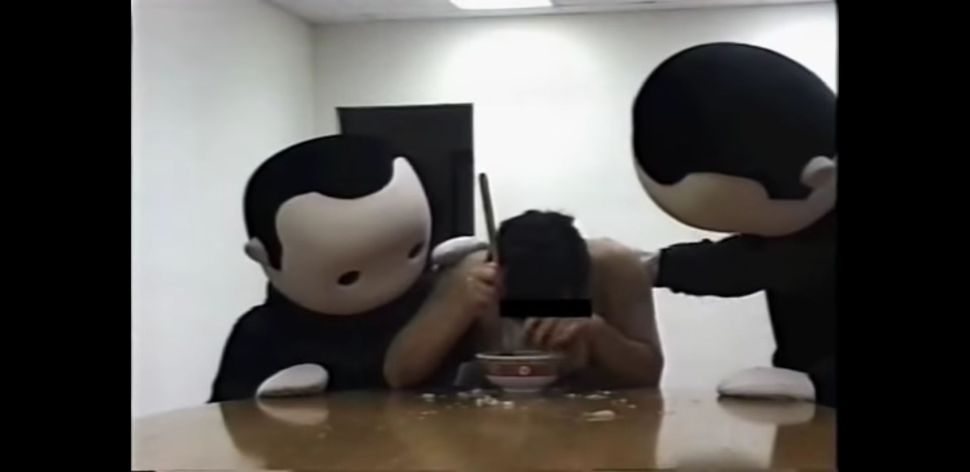 Fast jedem der sich etwas mit Horror beschäftigt sollte dieses Bild bekannt sein. Dieses Bild stammt wie auch von letzten Beitrag aus dem DarkNet. "Blank Room Soup" heißt dieses. Das Bild zeigt zwei Menschen in Anzug und einer gruseligen Maske und einen nackten Mann der eine Suppe mit einem Holzkochlöffel isst. Der Mann scheint gestresst und hektisch. Dann kommt einer von den zwei Männer in den Raum und streichelt dem Mann über den Rücken. Daraufhin wird der Mann noch herrlicher und atmet schwer. Ein zweiter man kommt von rechts ins Bild und streichelt ihm ebenfalls über den Rücken. Nun verwandelt sich das hektische Atmen zu einen verzweifelten Weinen und er isst die Suppe noch schneller. Eine Theorie besagt, dass die Ehefrau von dem Mann ermordet wurde und ihr Fleisch in die Suppe verarbeitet wurde. Die zwei Masken stammen von einem Künstler Raymon Percy und wurden auch als RayRays bezeichnet. Doch kurz nach der Ausstellung dieser zwei Kostüm wurden die entwendet. Dieses Video ist höchst seltsam. Wer sich für Horror interessiert, der sollte sich Blank Room Soup auf jeden Fall einmal auf YouTube anschauen.