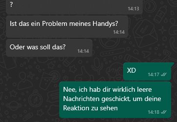 Frosch®-🇪🇸vor 2 JahrenAnonym der 10 000Ich will die Reaktionen der anderen sehenDas mit dem leeren Text hatten wir hier schon mal vor paar Monaten