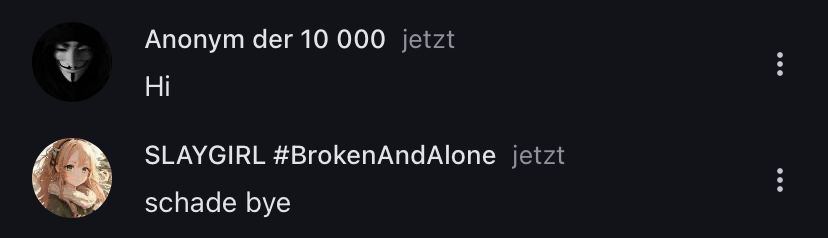 Anonymvor 2 JahrenCerberusWenn noch jemand hier leere nachrichten reinsendet, lösche ich den Beitrag👀 darfst nd, hier ist ein Chat🤓
