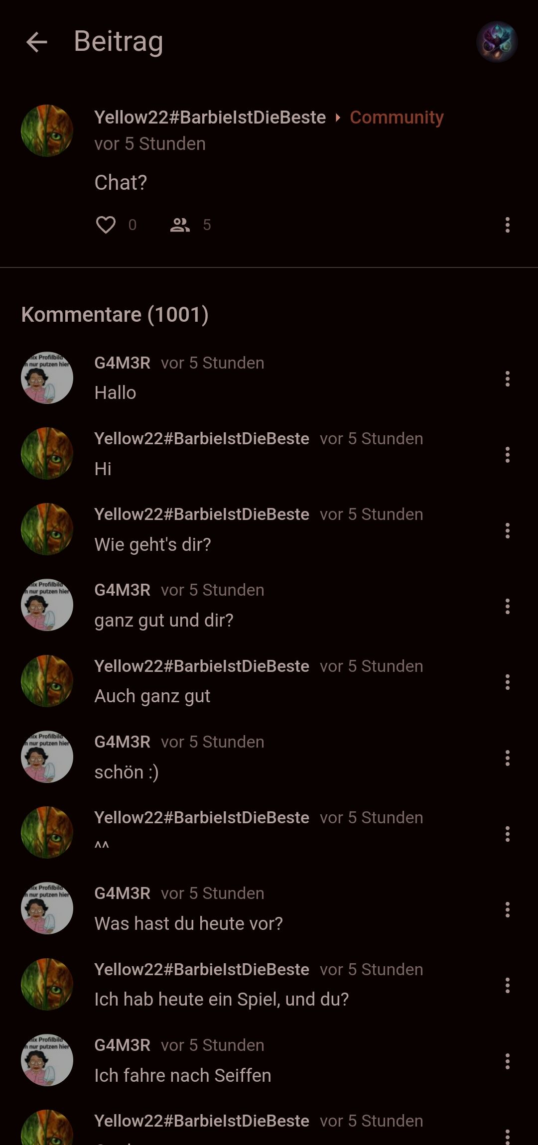 Bei Fragen kannst du dich gerne an die anderen und mich wenden. Hab eine schöne Zeit. Wichtig: nicht spammen, beleidigen, nicht mehr als 3 Witze/Beiträge/Memes pro Tag veröffentlichen^^