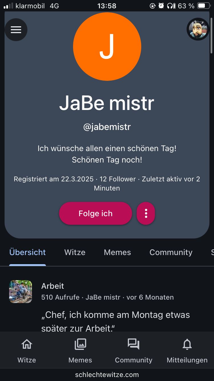 Maxi03vor 3 TagenCactusC🇦🇹14108WER VON EUCH KNALLKÖPPEN HAT JABE GEFOLGT"Hat JaBe gefolgt". Wenn dann "folgt JaBe"