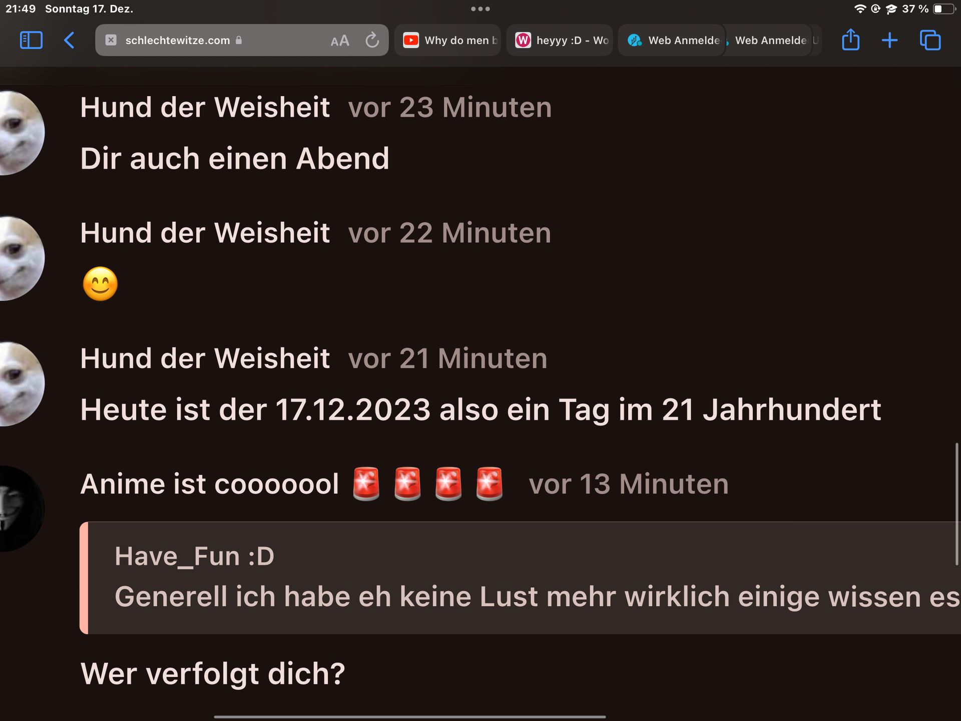 Hallo, ich komme gleich. Ich mache nur einen Beitrag, da ich etwas loswerden will. Es geht besonders um dich, Anime Boy. Aber keine Sorge, ich verteidige dich ;)