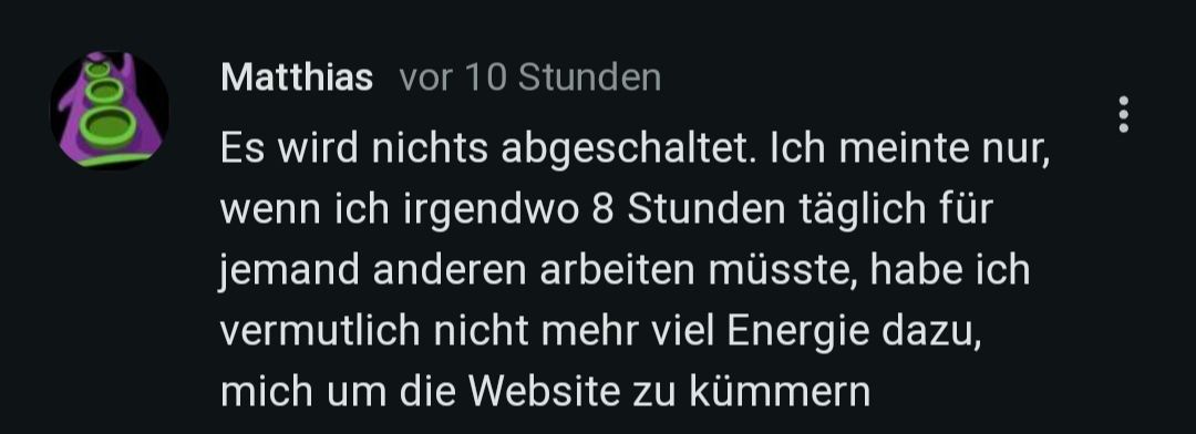 Das ist natürlich sehr schade, aber es ist Matthias' Zeit, die er hier reininvestiert. Ich weiß nicht, wie viel Arbeit dir das ersparen würde, aber zur Wartung der Seite könntest du sie theoretisch auch open-source machen, sodass auch die Community (z.B. auf GitHub) dir dabei helfen kann. Wenn du dann noch den dienstältesten Mods mehr Rechte gibst, würdest du auch da Zeit sparen. Dann könntest du vielleicht dir wie du sagtest eine "normale Arbeit suchen" und die Webseite sozusagen nebenbei betreiben, solange die Einnahmen die Serverkosten decken. Womöglich würde GitHub die Seite sogar bekannter machen. Das klingt jetzt alles deutlich einfacher, als es ist, ich weiß, aber ich wollte es mal gesagt haben. Und auch wenn das nichts hilft, würde es mich freuen, wenn deine ganze Arbeit hier nicht verloren geht und jemand das alles weiterverwenden kann (Merkt man, dass ich Fan von open-source bin?). Viel zu viel geschrieben, Danke für die Aufmerksamkeit an alle die bis hier durchgehalten haben und natürlich insbesondere an Matthias für SW.