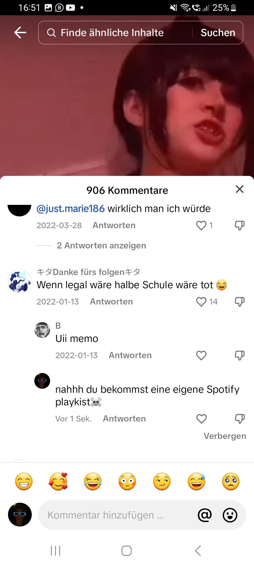 Ich habe gerade ein video von dir geguckt. Ich habe es lauter gemacht, weil deine Stimme so leise ist und plötzlich kam das Intro. Mein ohren