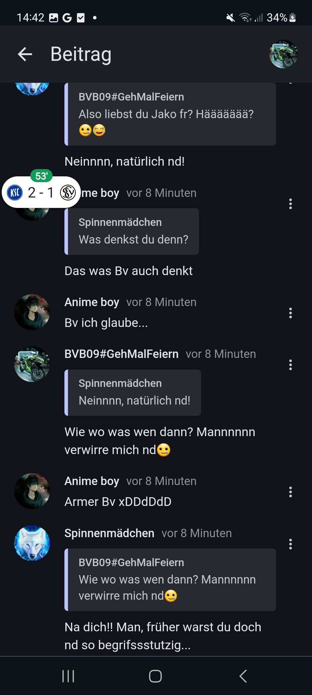 BVB hatte gefragt ob ich ihn in rl liebe und ich hatte dann irgendwie sowas ähnliche geschrieben, wie ich damals mit dir geübt hatte und er meinte dann halt auch sowas...