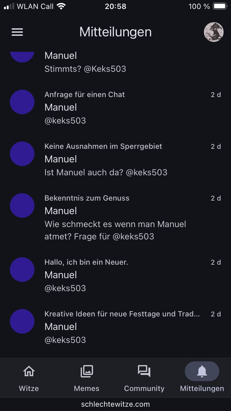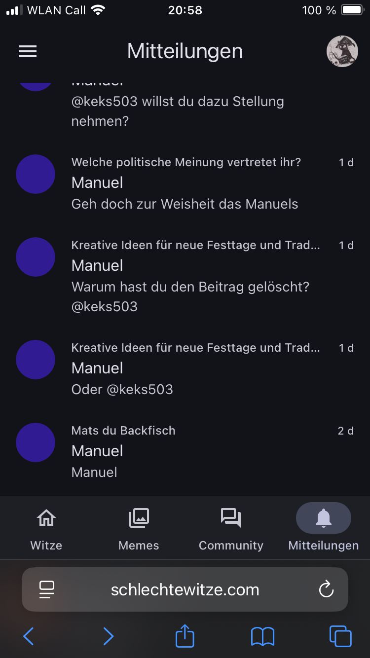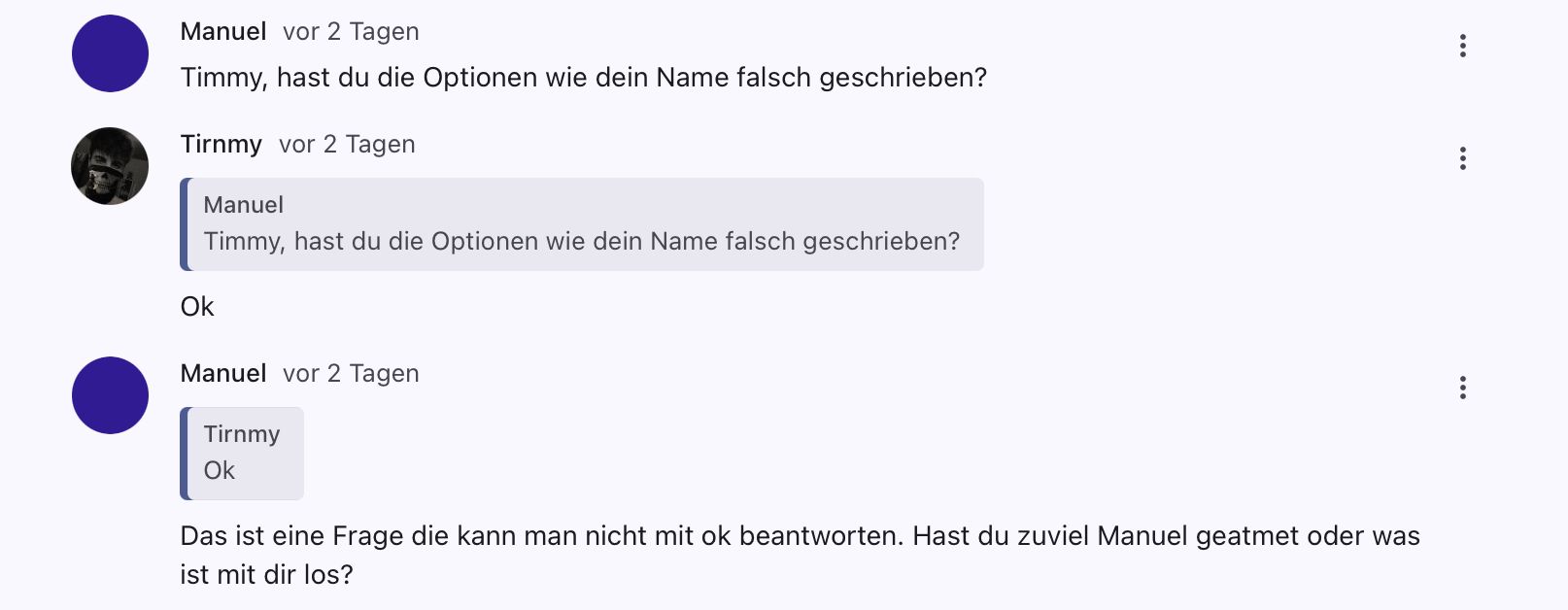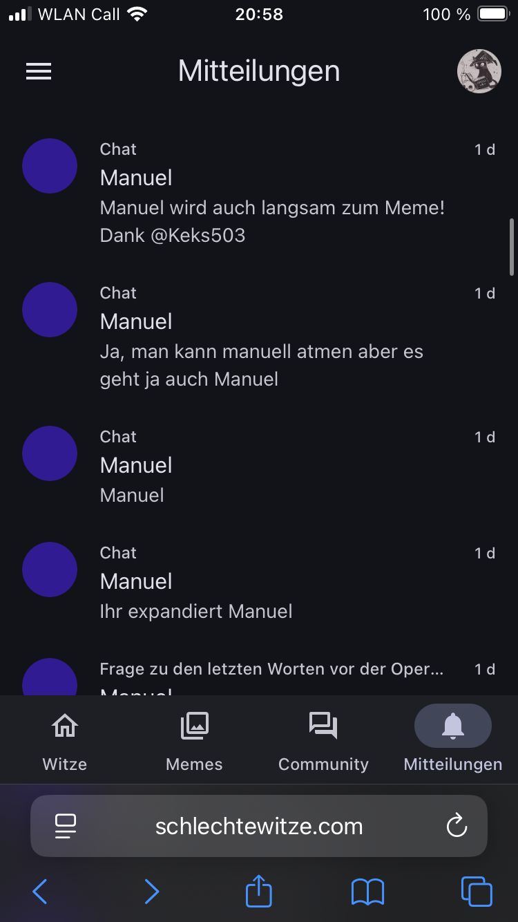 Spamm doch eif Manuel auch mit Nachrichten voll und schau wie er reagiert