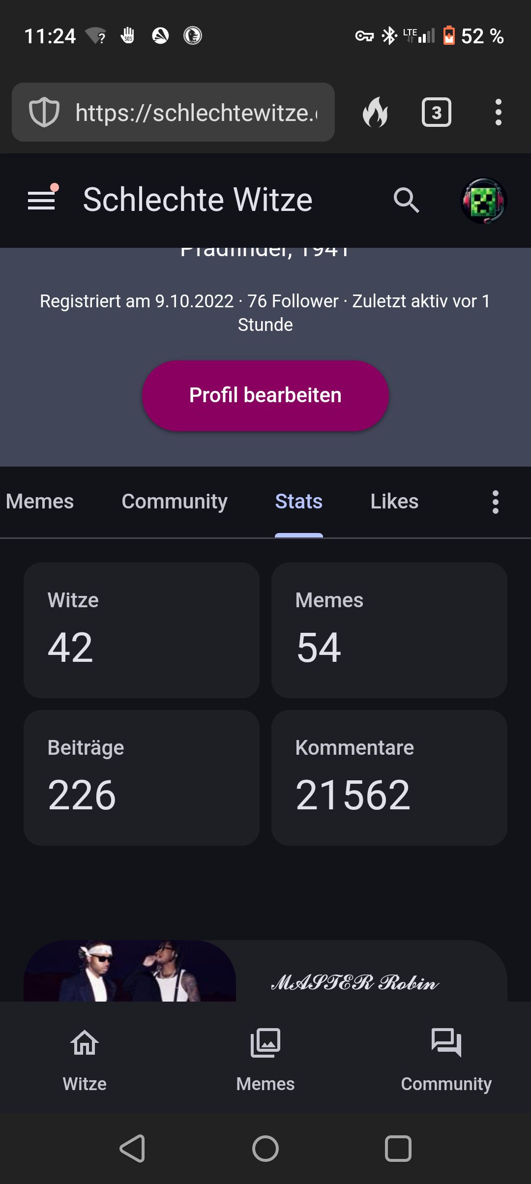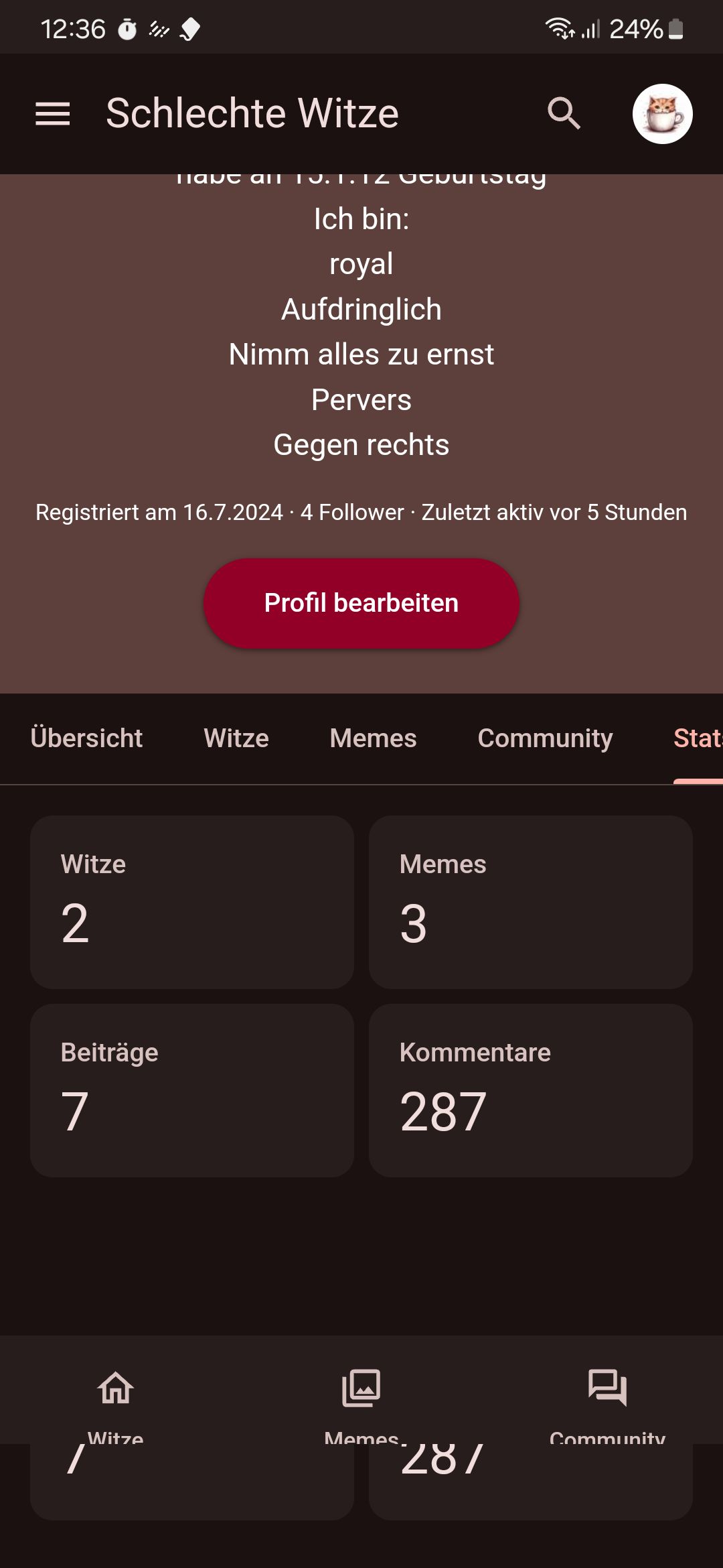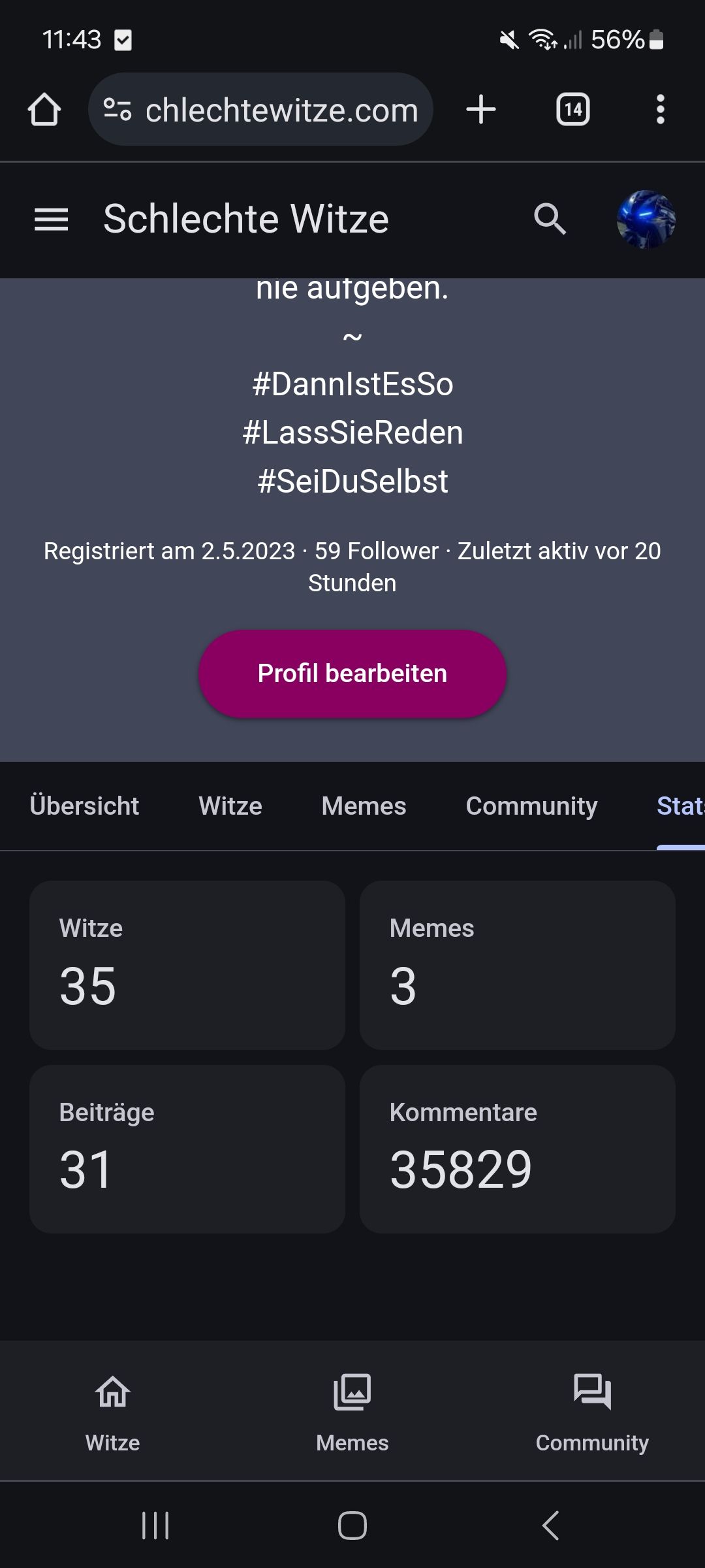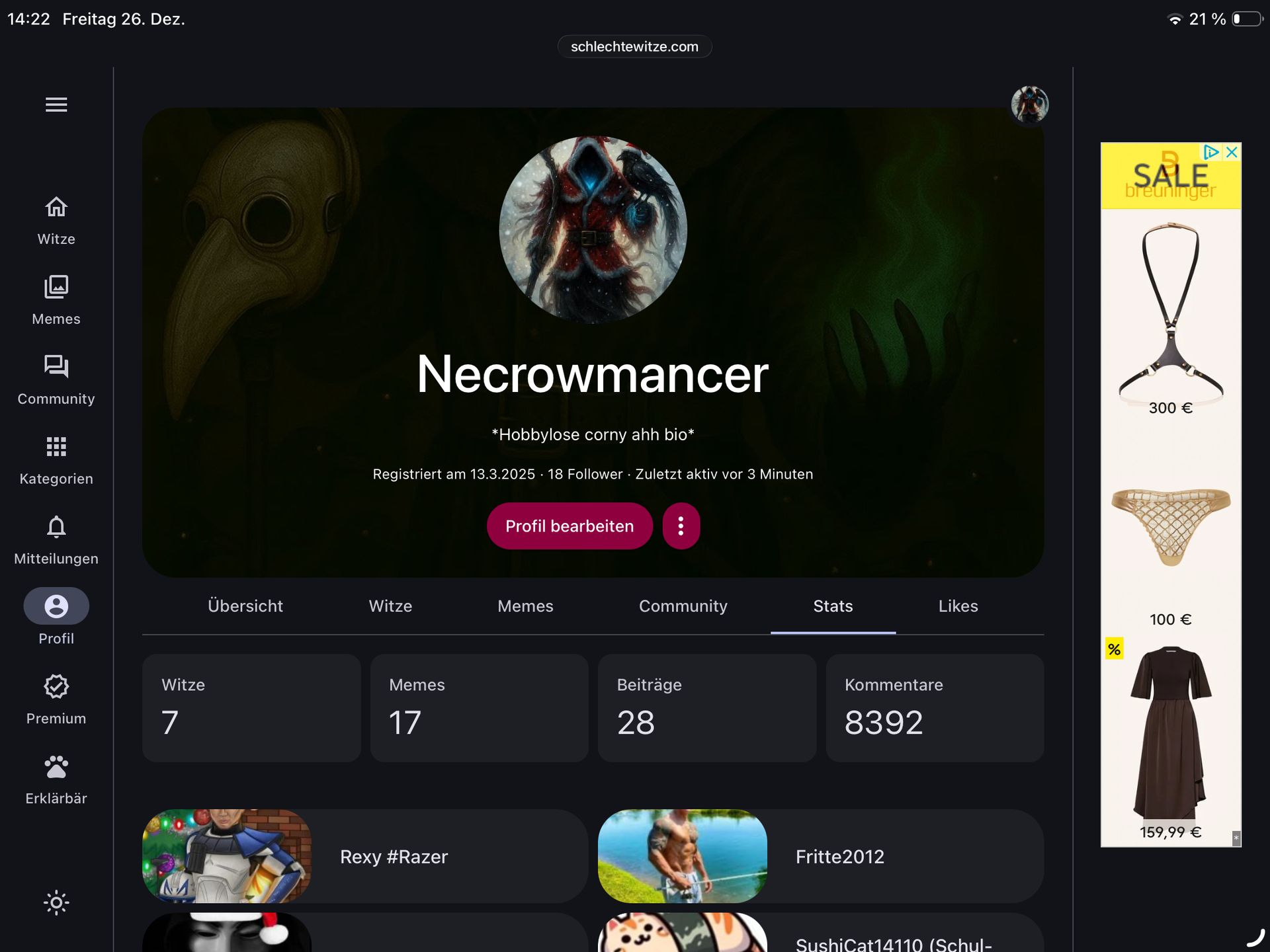 SWFvor 1 JahrTheRandomBirdBei mir sind keine🥲Doch, einfach bei Übersicht, Witze, Memes so zur Seite scrollen