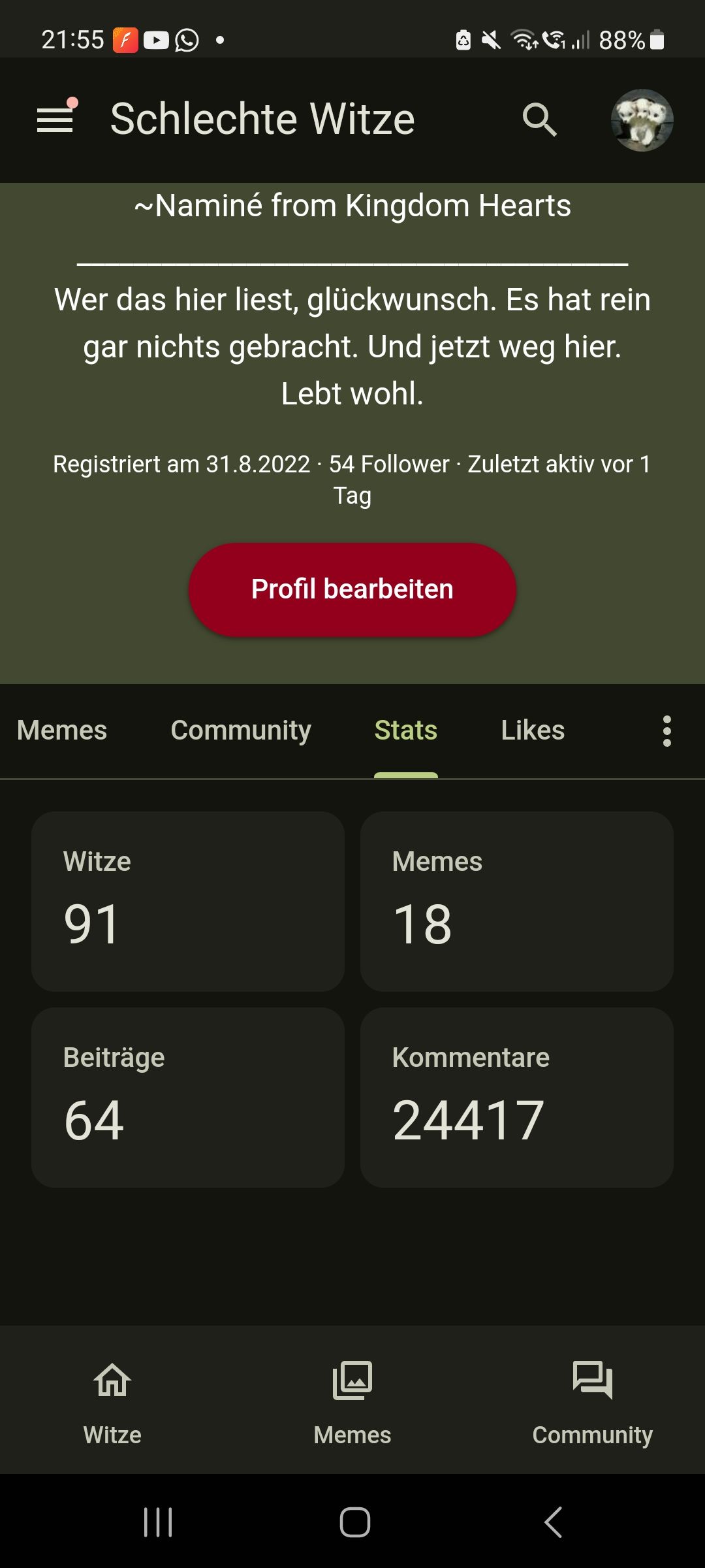 Habe am Anfang als hier war eigentlich nur Witze gelesen und memes angeschaut + geliked bin erst seit kurzem so aktiv