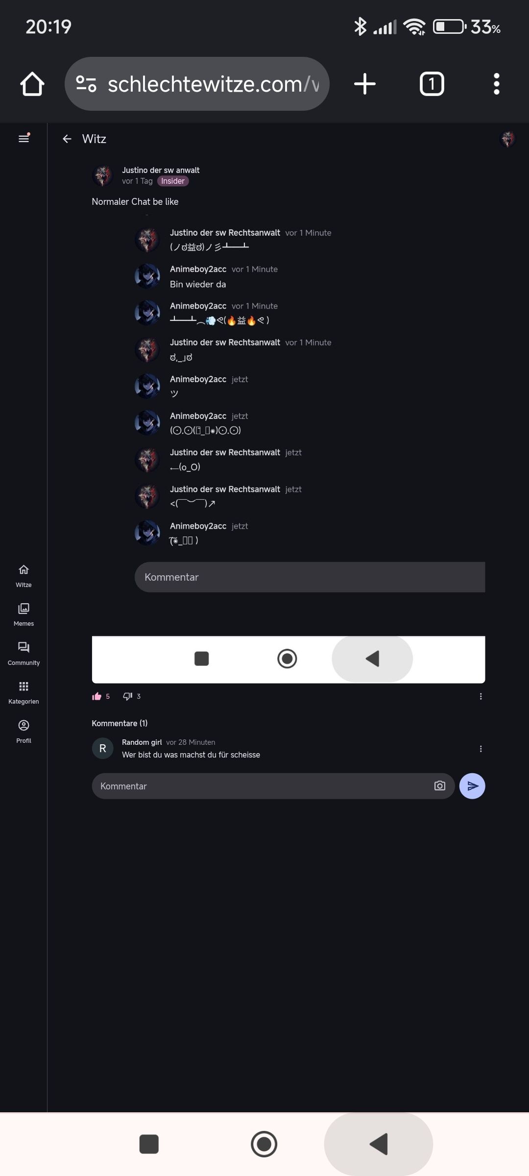 hast du keine Freunde? Musst du uns vollkommen mobben?