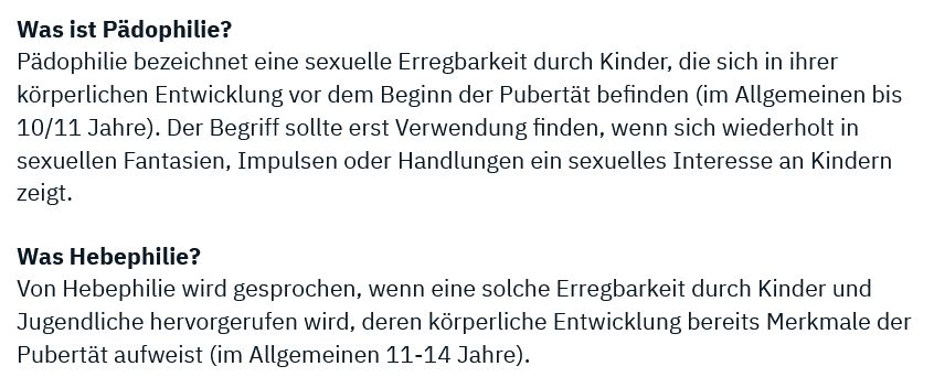 Ich weiß, hebephil klingt nicht ganz so knackig... Geht bissel schwerer von der Zunge... Aber "Pädo" würde bedeuten, dass die auf Kiddies stehen, die noch keine Schamhaare haben, geschweige denn Titten oder Stimmbruch...