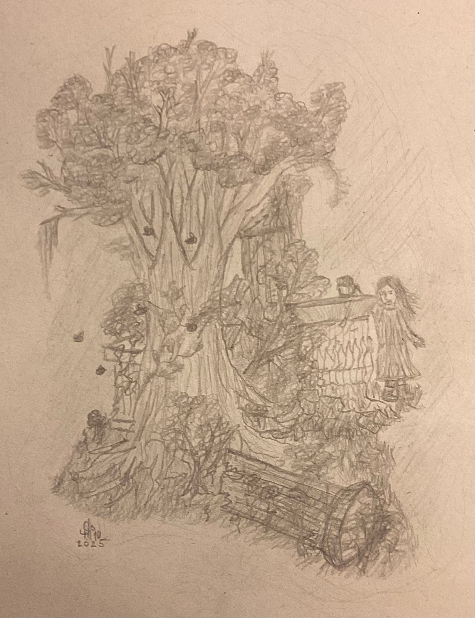 5. Unscharf, befürchte ich, aber das ist für eine Geschichte; ein kleines Mädchen lässt im Wald ein Stück Kuchen auf dem zerfallenen Schrein eines alten, vergessenen Gottes fallen. So wird sie zur Hohepriesterin und Gebieterin des aus seinem jahrtausendealten Schlummer erwachten Gottes.