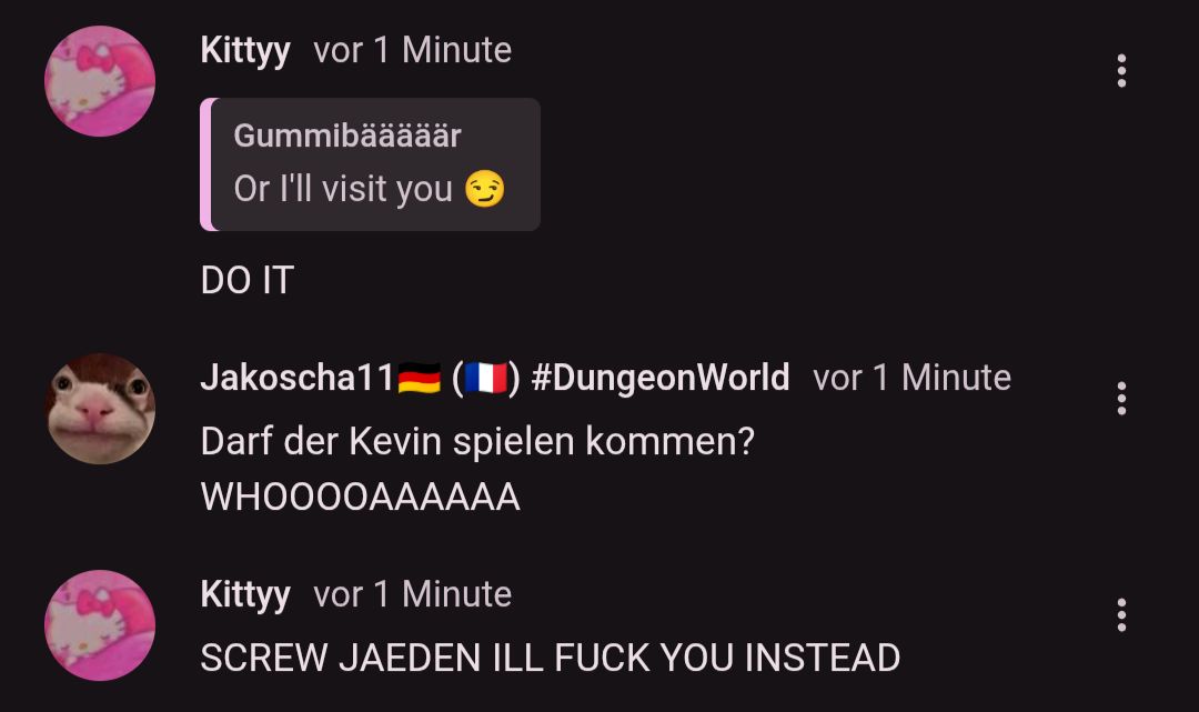 Du kannst gerne lesen was im verlauf des Chats ans Licht gekommen ist