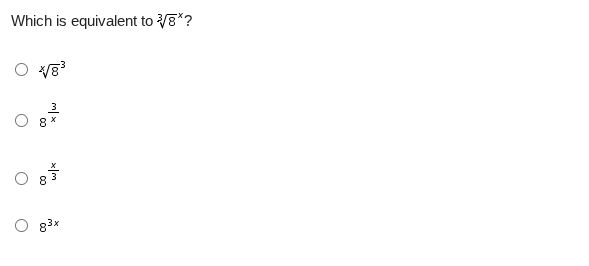 In deinem Fall: $\sqrt{8^x}$ ist IMMER $8^{\frac{x}{3}}$. Exponent (x) geteilt durch Wurzel-Index (3).