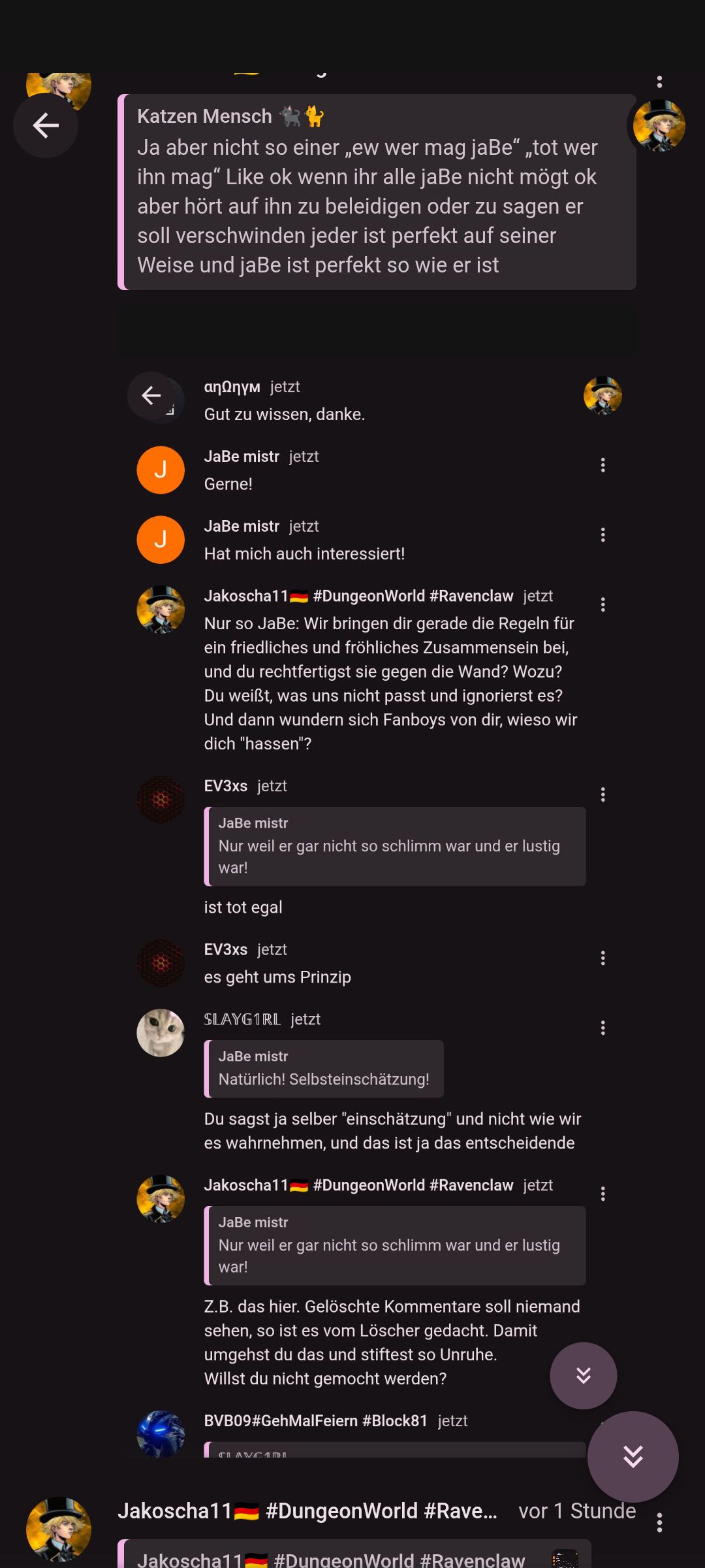 Ok. Kann nd jeder seine eigene Meinung haben? Ok, gut dann magst du JaBe eben. Allerdings haben wir Gründe, dies nicht zu tun, da er tatsächlich Spammt und ich persönlich weiß nicht, wie man so Freunde finden kann, mich persönlich nerven die emojibomben. JaBe nervt mich, das bleibt auch so nach dem Beitrag.
