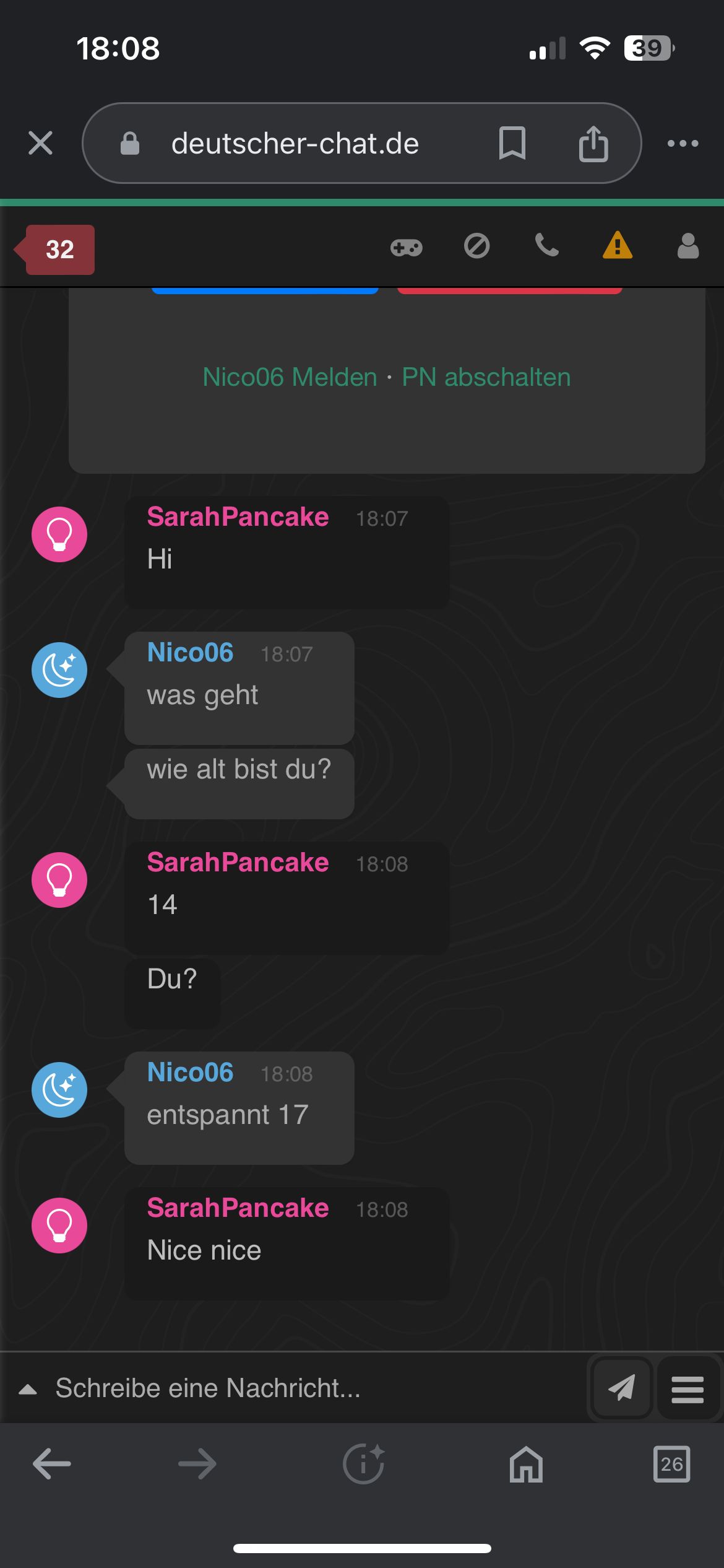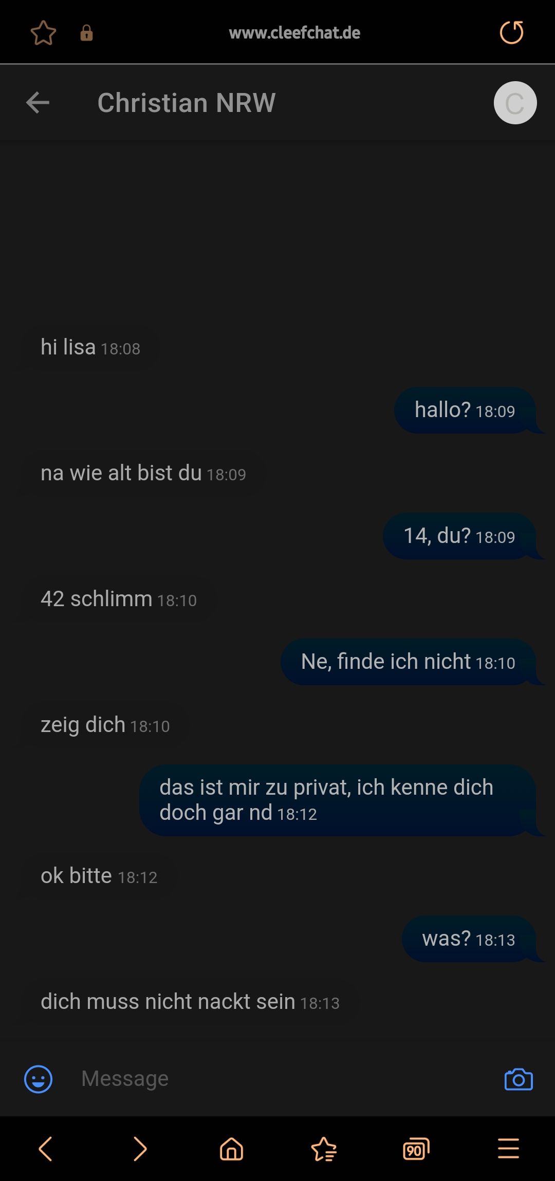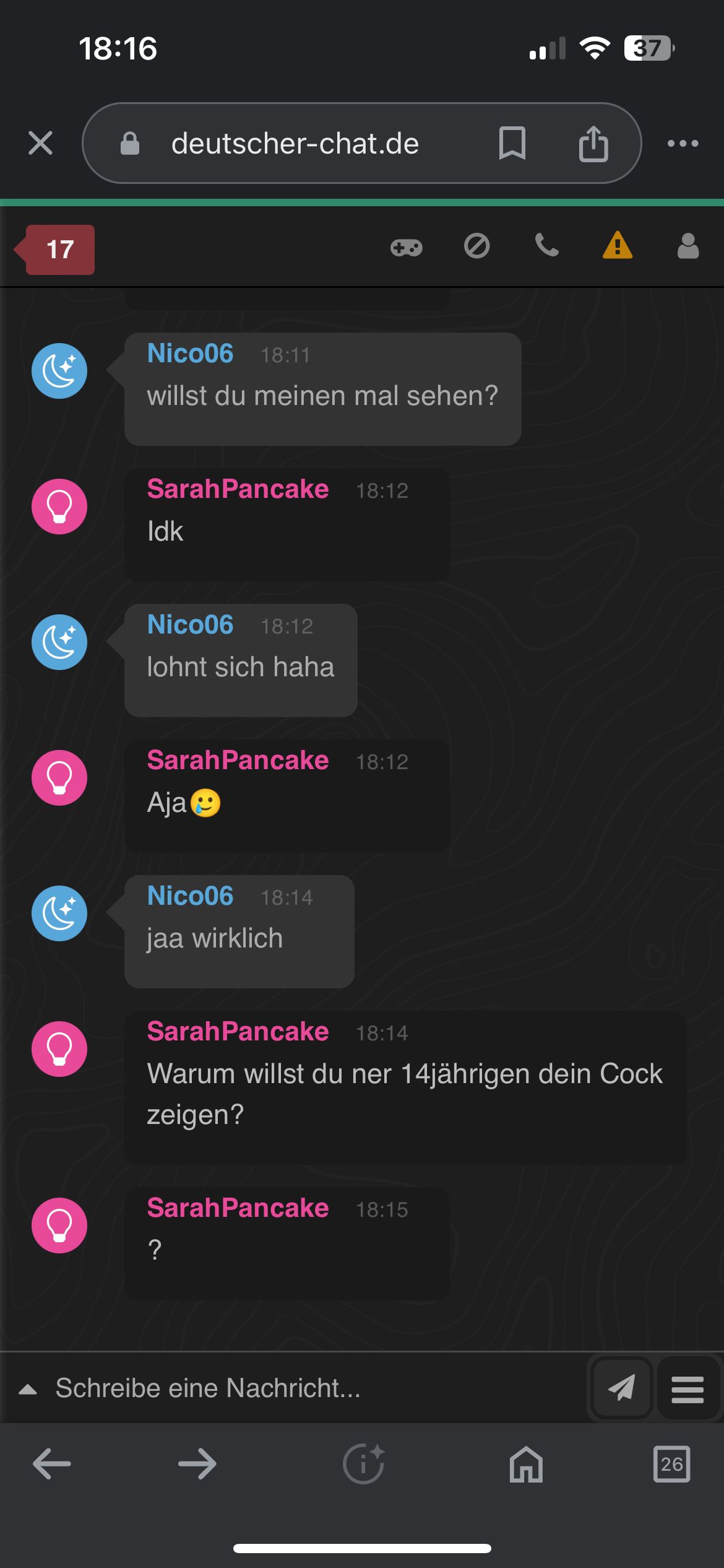 Aber geb dich als 14 Jähriges Mädchen aus sonst macht’s ja keinen Sinn