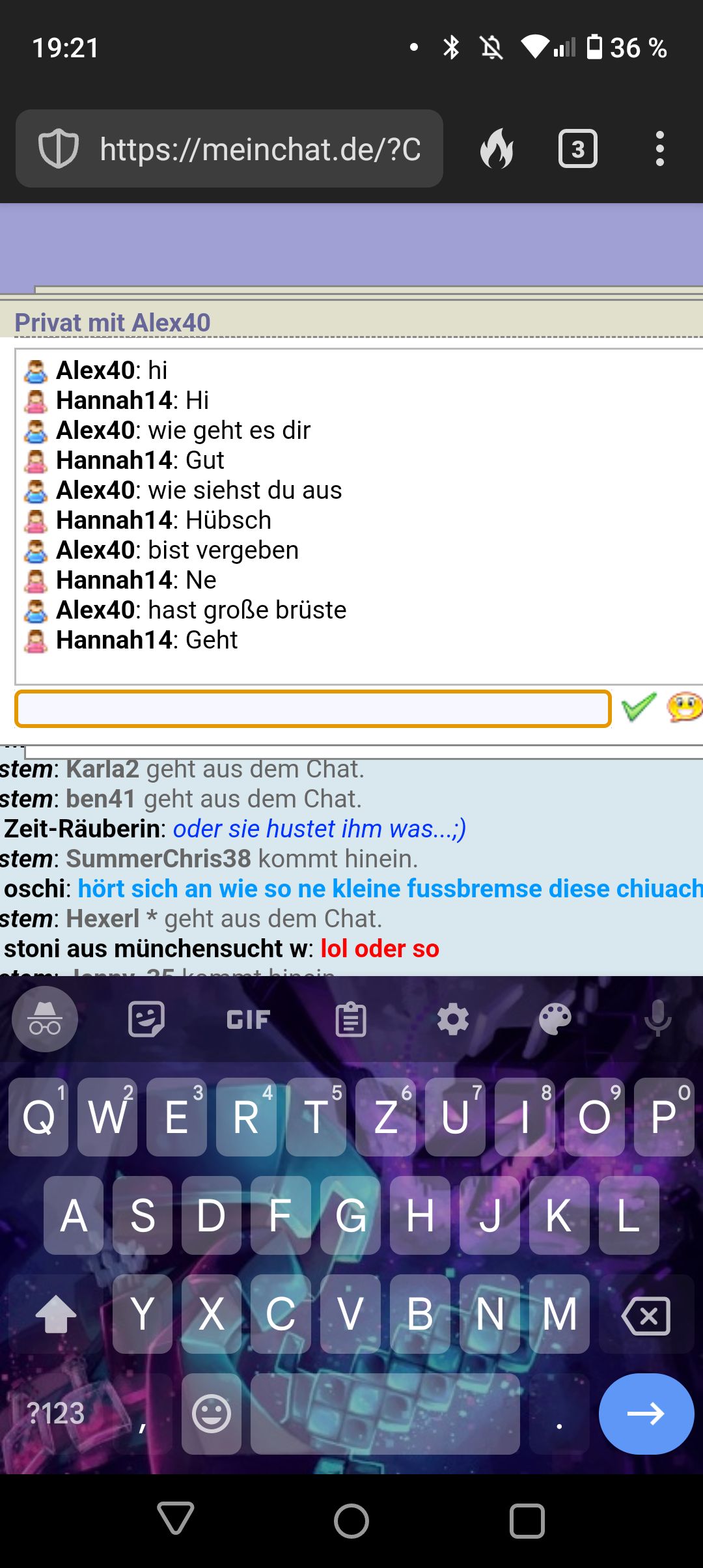 Vlt muss man erwachsen sein oder keine Speere für sowas haben um da zu chatten
