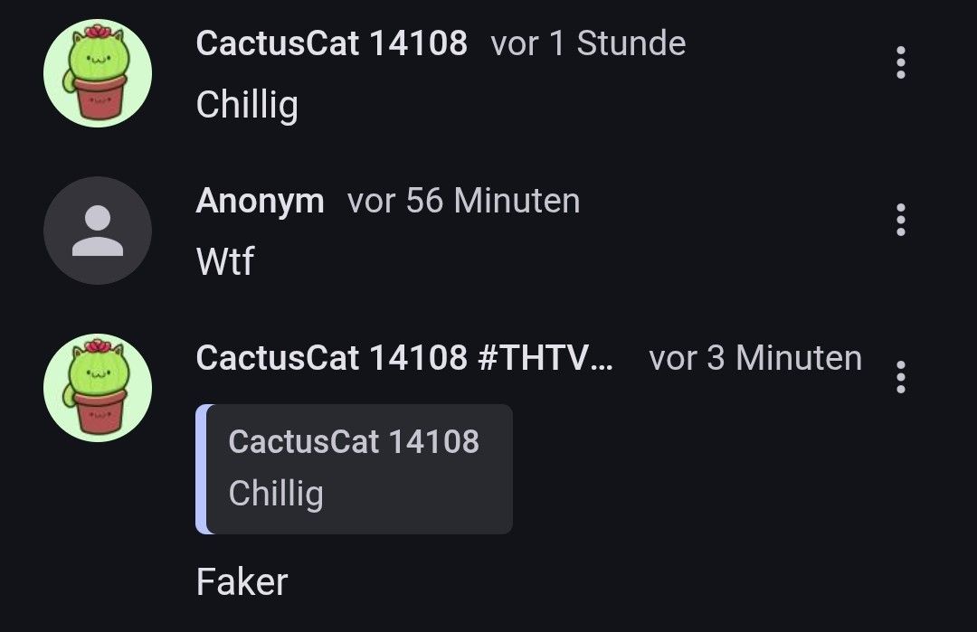 Nein, einfach mal nachdenken was eig los is und ob das als Beleidigung zu nehmen ist. Du musst auch mal was über dich ergehen lassen, auch wenn es hart ist, und nicht immer “Mimimi” machen. Und das war keine wirkliche Beleidigung