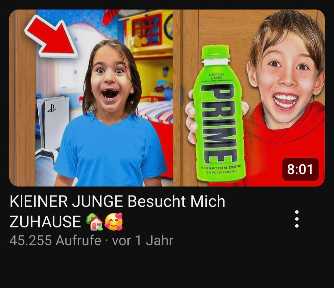 www.youtube.com/watch?v=MDM92ICu7oQ. Auch eine Katastrophe. Der Titel komplett Clickbait und diesen ganzen Brainrot Kram kann ich nicht mehr sehen. Wie dumm kann die Jugend eigentlich sein, sowas zu feiern? Und alles in solchen Videos ist so übertrieben...
