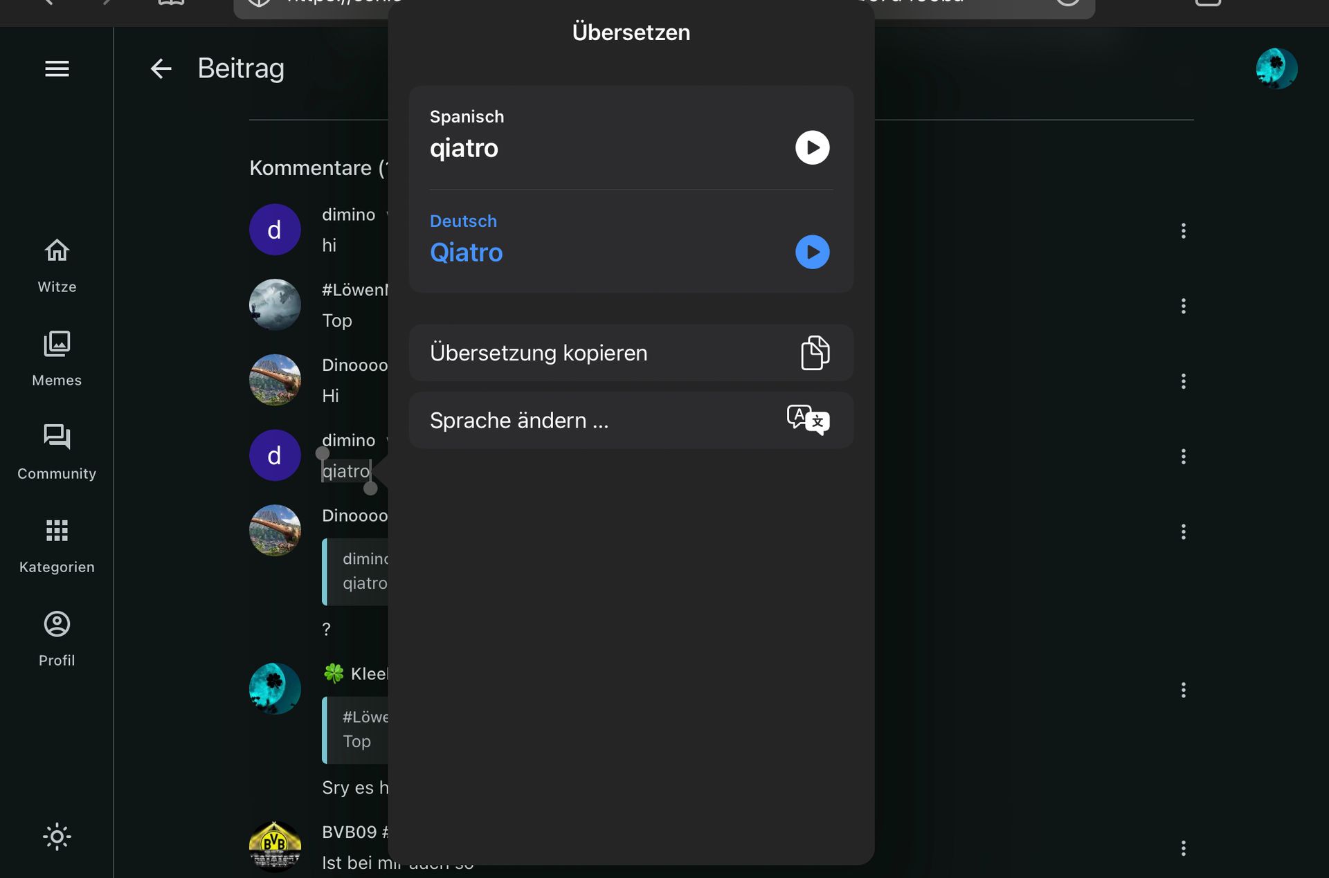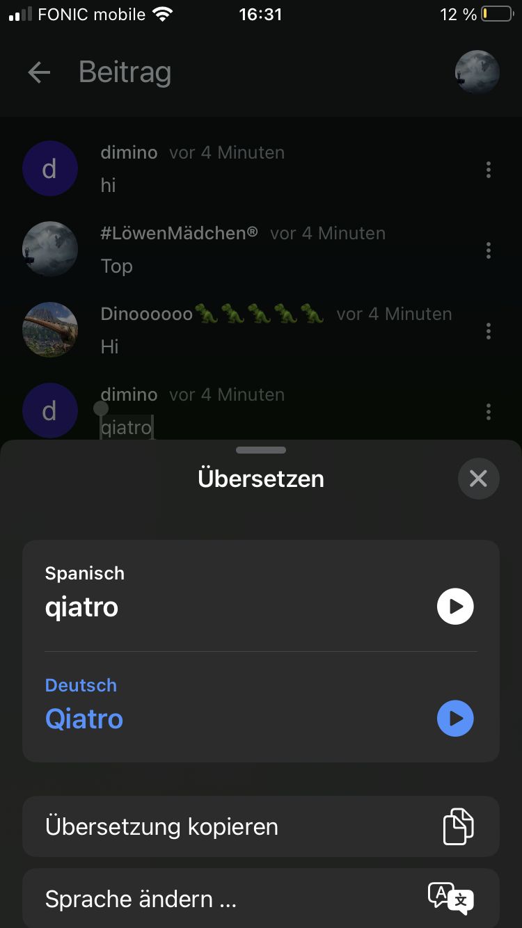 Hm, aber übersetzen geht nicht 😂