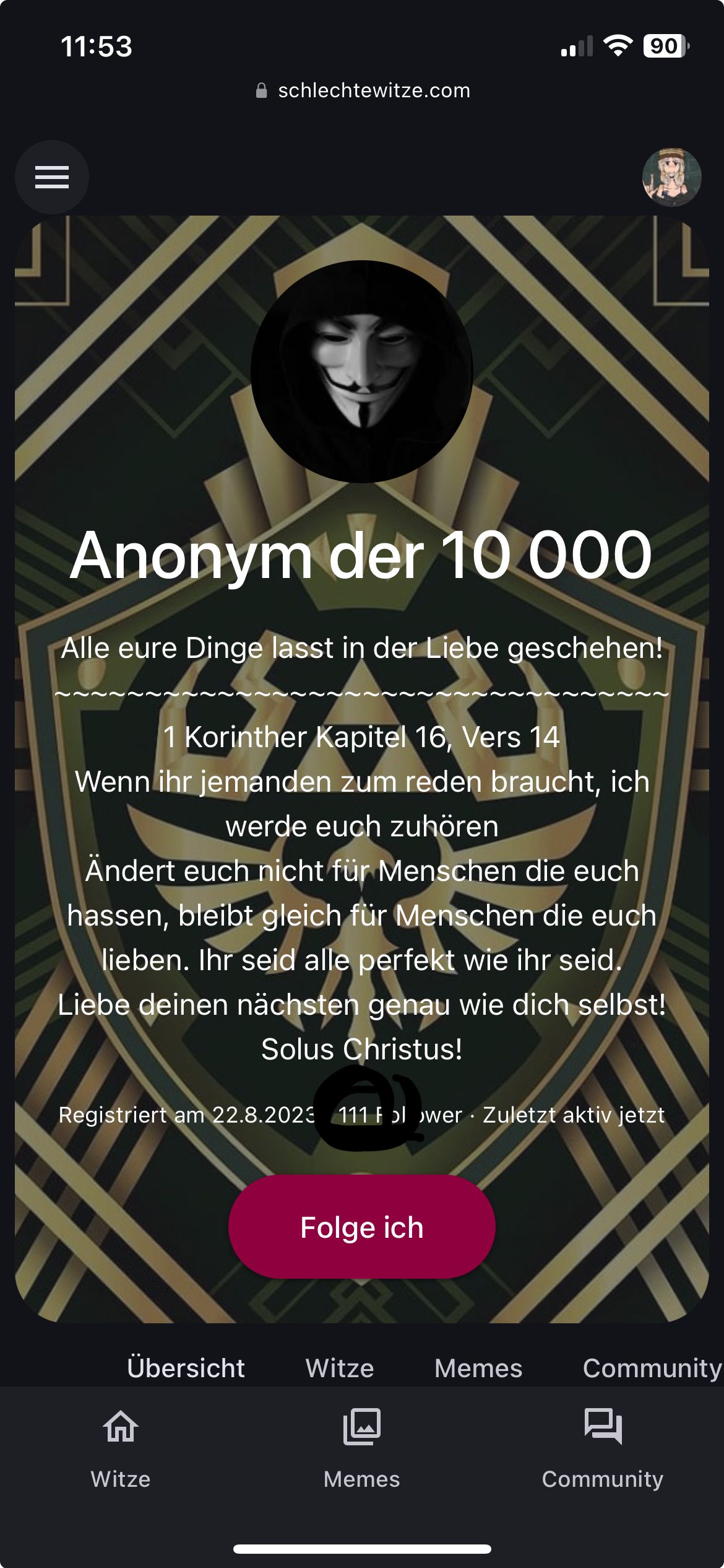 Nachdem ich das letzte bissle würde für heute verloren habe... Kann ich jz beruhigt memes anschauen die so schwarz sind, dass ich auch morgen keine würde mehr haben werde so wie ich lache...