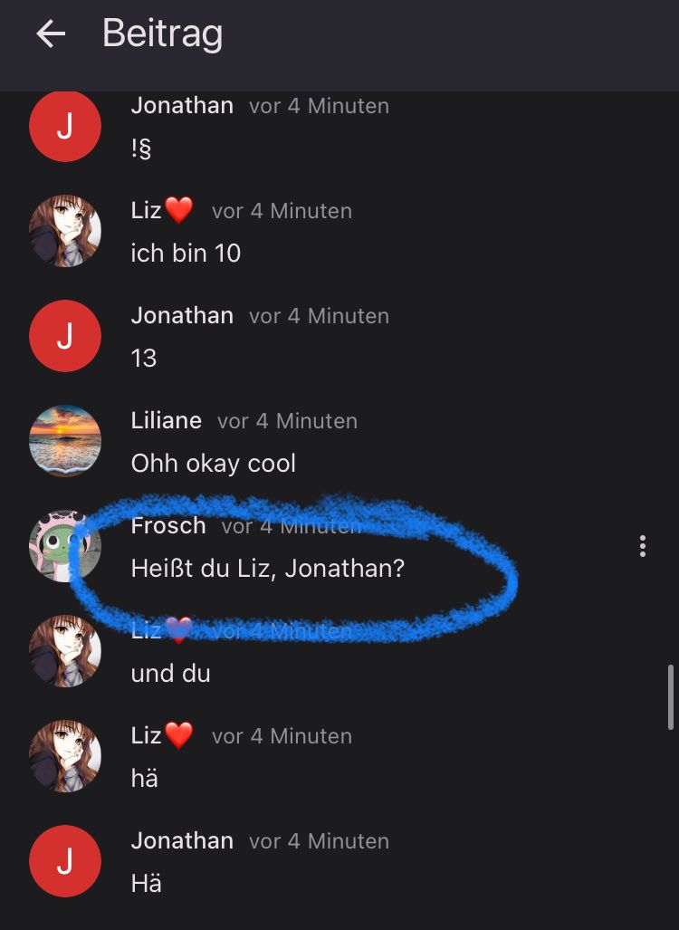 Frosch®-🇪🇸vor 3 JahrenDAS HABE ICH NUR GESCHRIEBEN, WEIL LIL GEFRAGT HAT, WIE ALT LIZ IST UND JONATHAN GEANTWORTET HAT. 🤦♂️🤦♂️🤦♂️🤦♂️🤦♂️🤦♂️🤦♂️🤦♂️🤦♂️🤦♂️