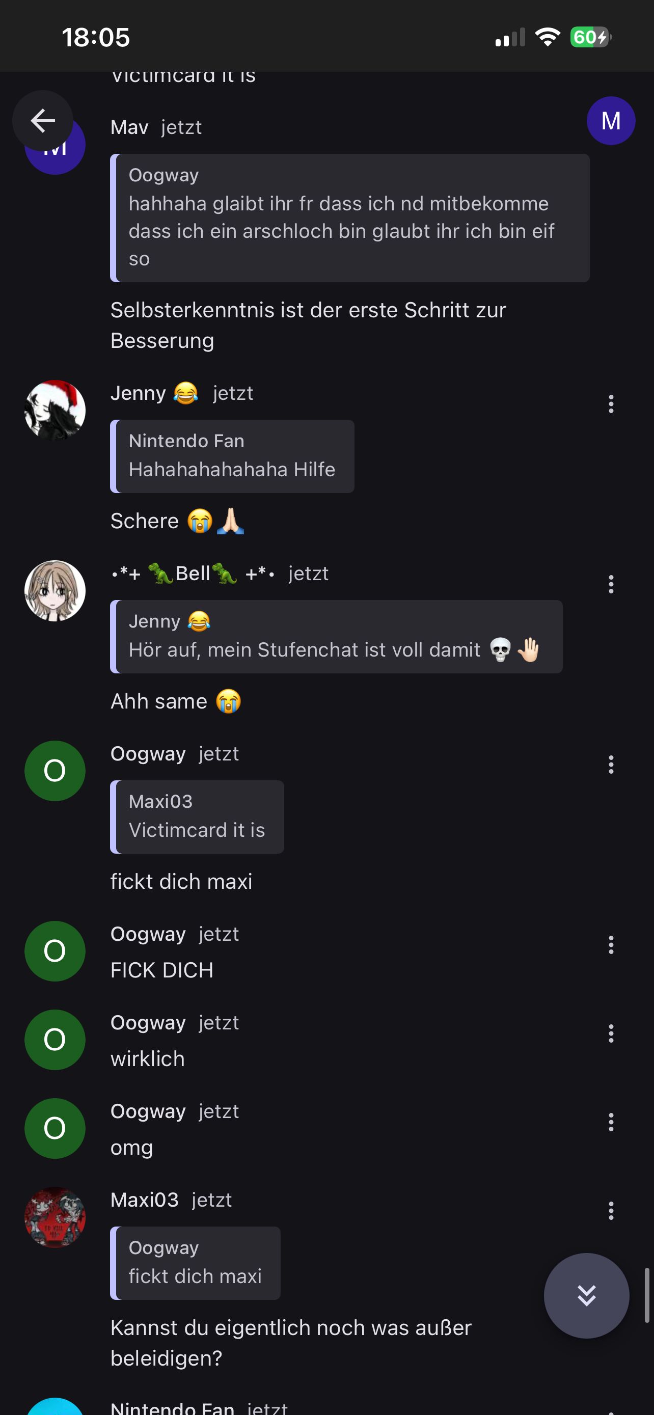 Ich habe bsp. noch nie Beleidigung von Colin, Voldrun, etc. gesehen. Und meistens sind diese Beleidigung leicht, und eher freundlich gemeint, und keine direkten angriffe.