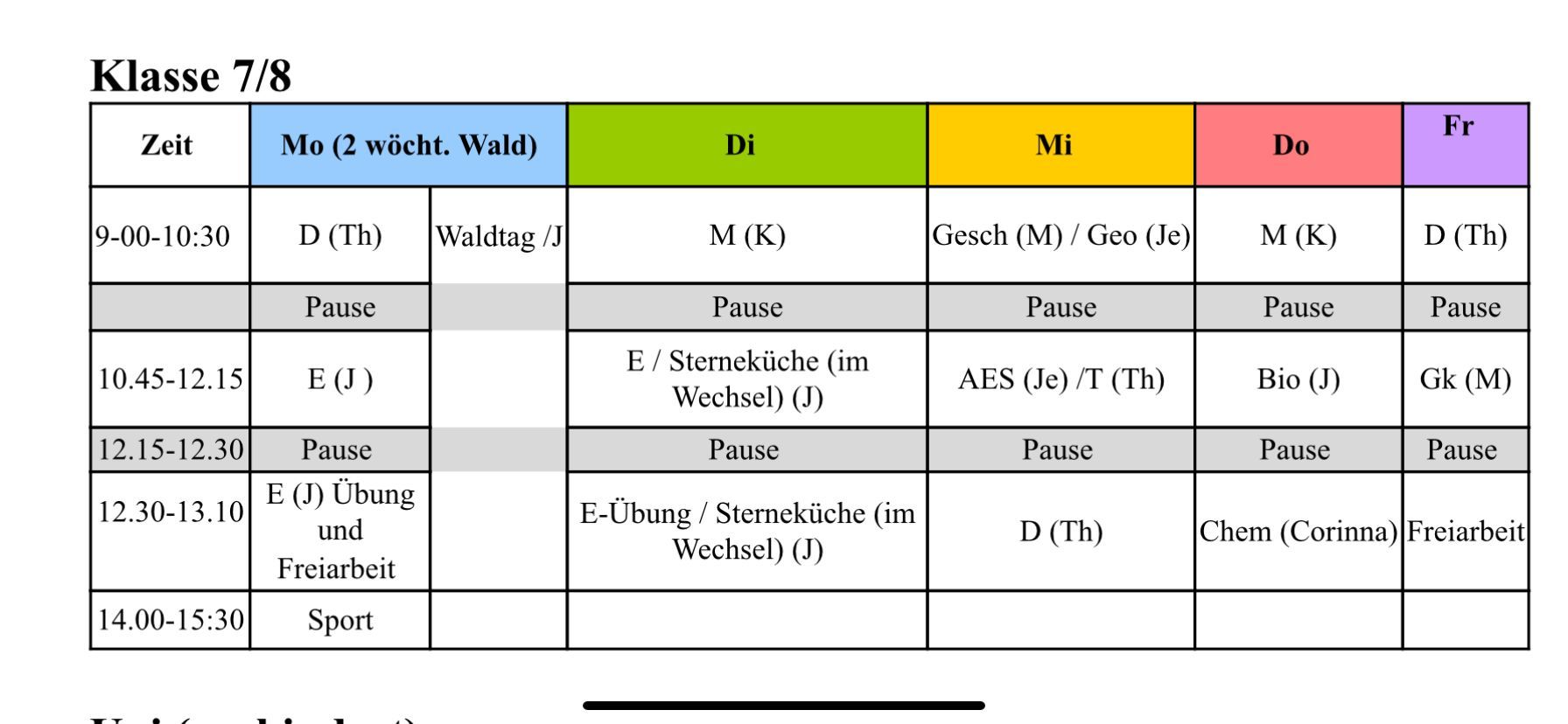 Wir sehen unseren Stundenplan für den nächsten Tag erst 17 Uhr