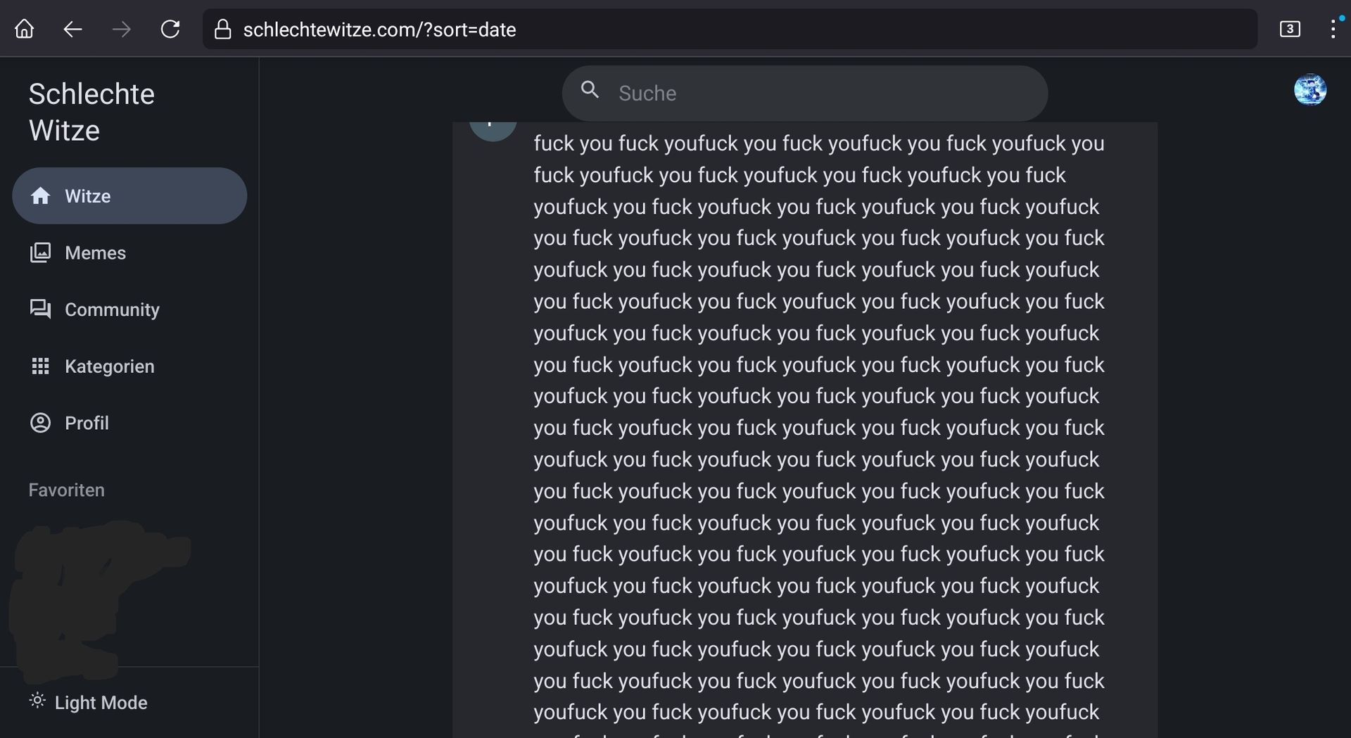 Warum? Damals konnte man die Witze erfolgreich als Spielwiese benutzen, besonders nur die einzelnen Wörter „Schwanz“ oder „Max“, und das wurde damals vom Administrator eher selten gelöscht, weil es sonst zu viel Arbeit für ihn wäre, die Witzeseite komplett zu bereinigen.
