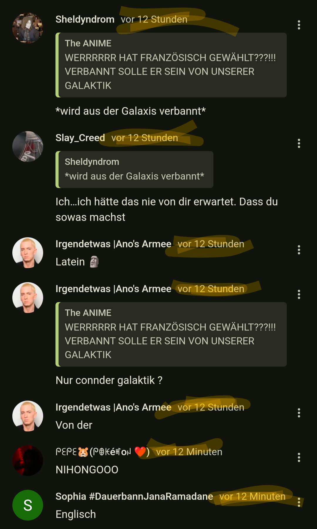 Creedvor 9 MonatenTHE ANIMEWERRRRRR HAT FRANZÖSISCH GEWÄHLT???!!! VERBANNT SOLLE ER SEIN VON UNSERER GALAKTIK.