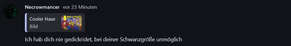 Wusste gar nicht das es so ein Verteidigungsmechanismus gibt. Ich verstehe Crow da aber. Gerade bei Oogy wird es schnell toxisch (Kein disrespect). Diese Ständigen Schüsse alla Cornball, Kind, Cringe, bis hin zu Beleidigungen sind ganz schlimm für die Mental Health, gerade wenn man so jung ist.