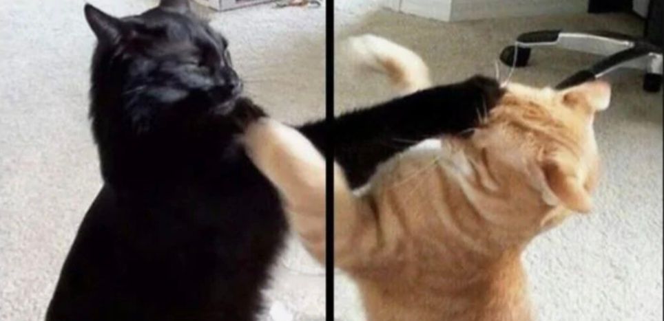 Zwei Katzen die sich ins Gesicht schlagen?