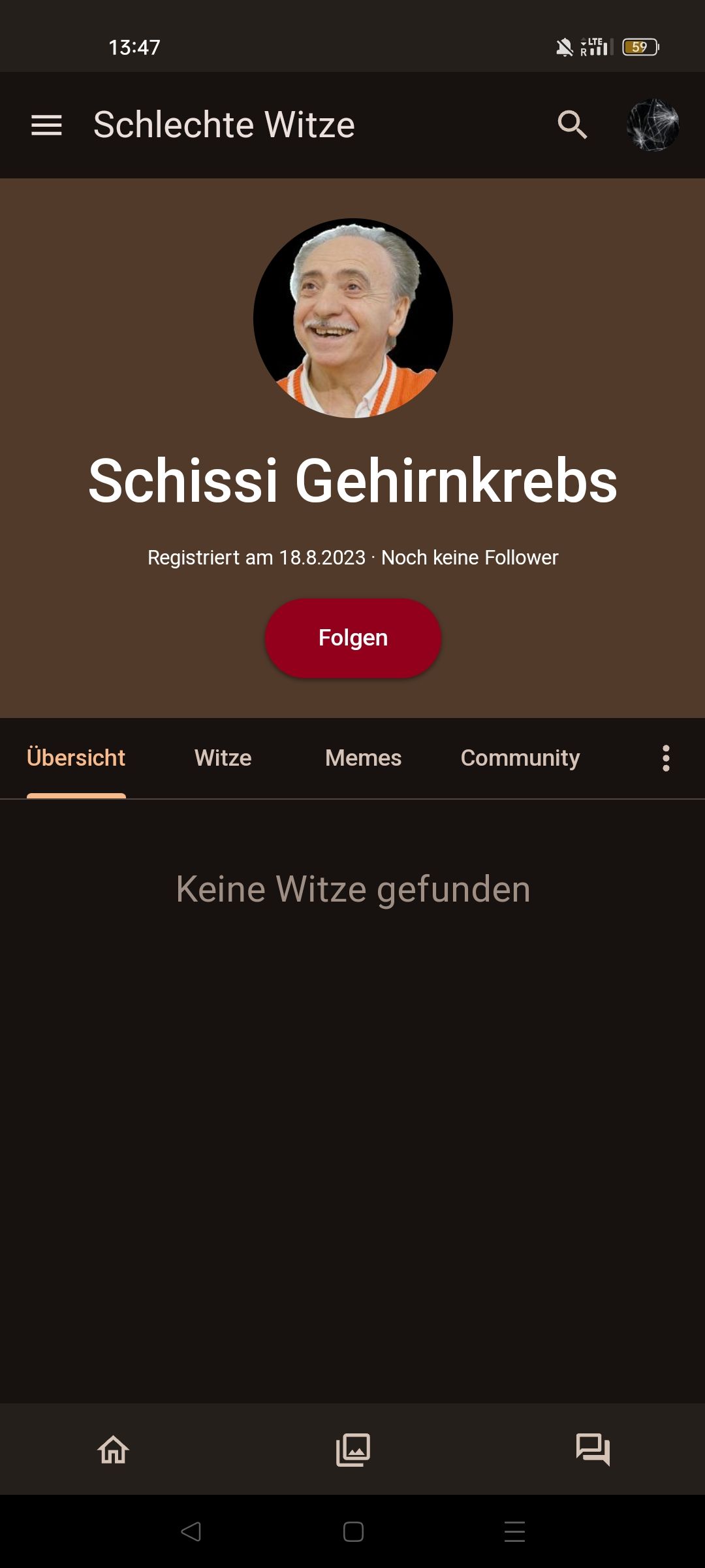 Wetten in ein paar Stunden schreibt er:" Aber ich will doch nur berühmt werden" weil er glaubt das er hier berühmt wird!