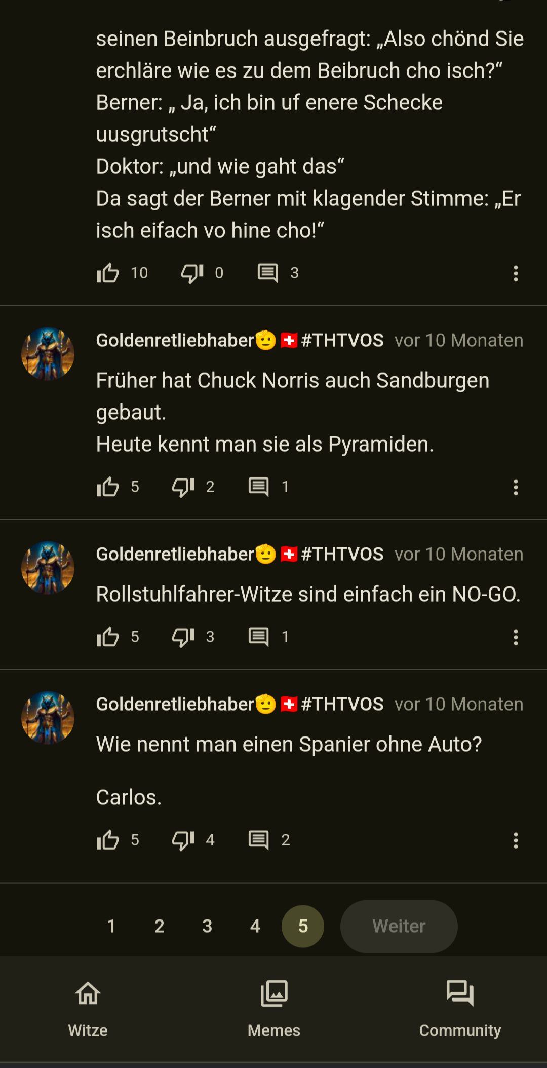 Anonym der 10 000vor 1 Jahr𝔊𝔬𝔩𝔡𝔢𝔫𝔯𝔢𝔱𝔩𝔦𝔢𝔟𝔥𝔞𝔟𝔢𝔯🇨🇭schlechtewitze.com/witze/6598862ac9d46e0f5dfb0172/nicht-ernst-gemeint*nicht existent*