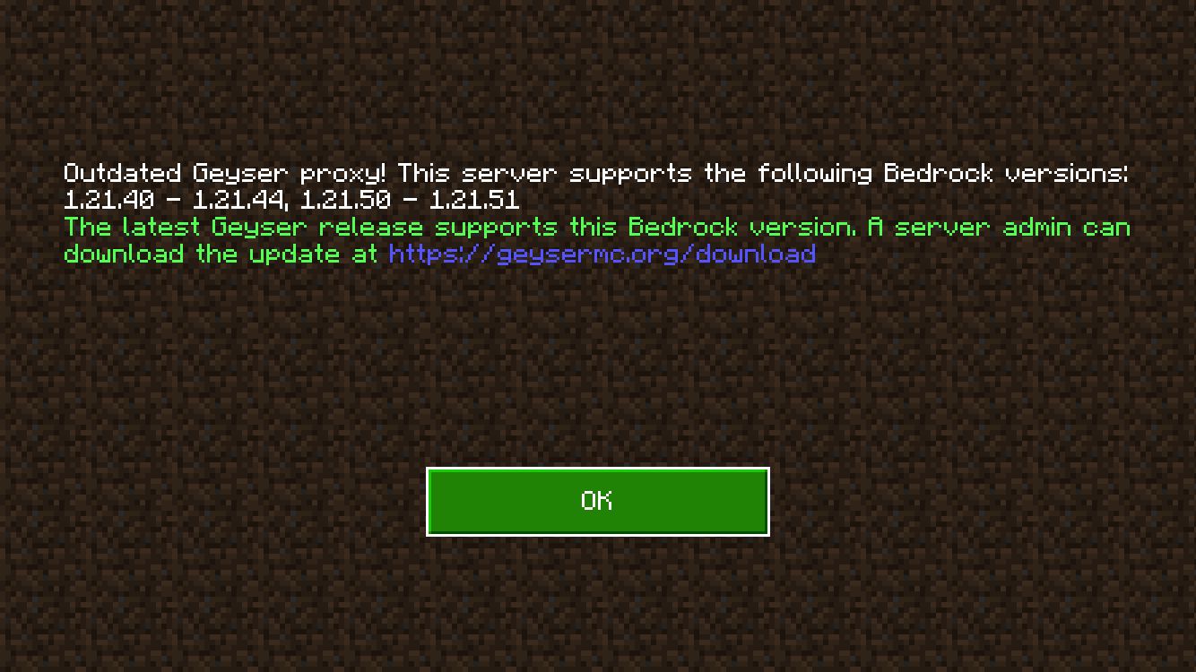tm muss die Bedrock version updaten