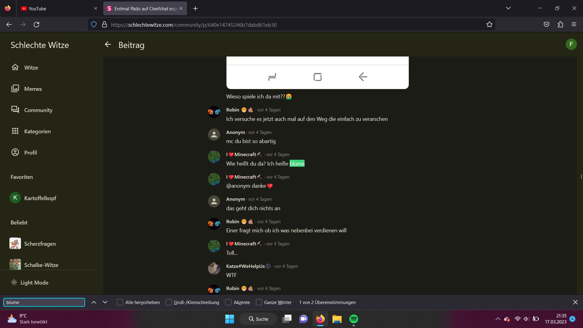 ich habe in dem chat einfach nach blume gesucht